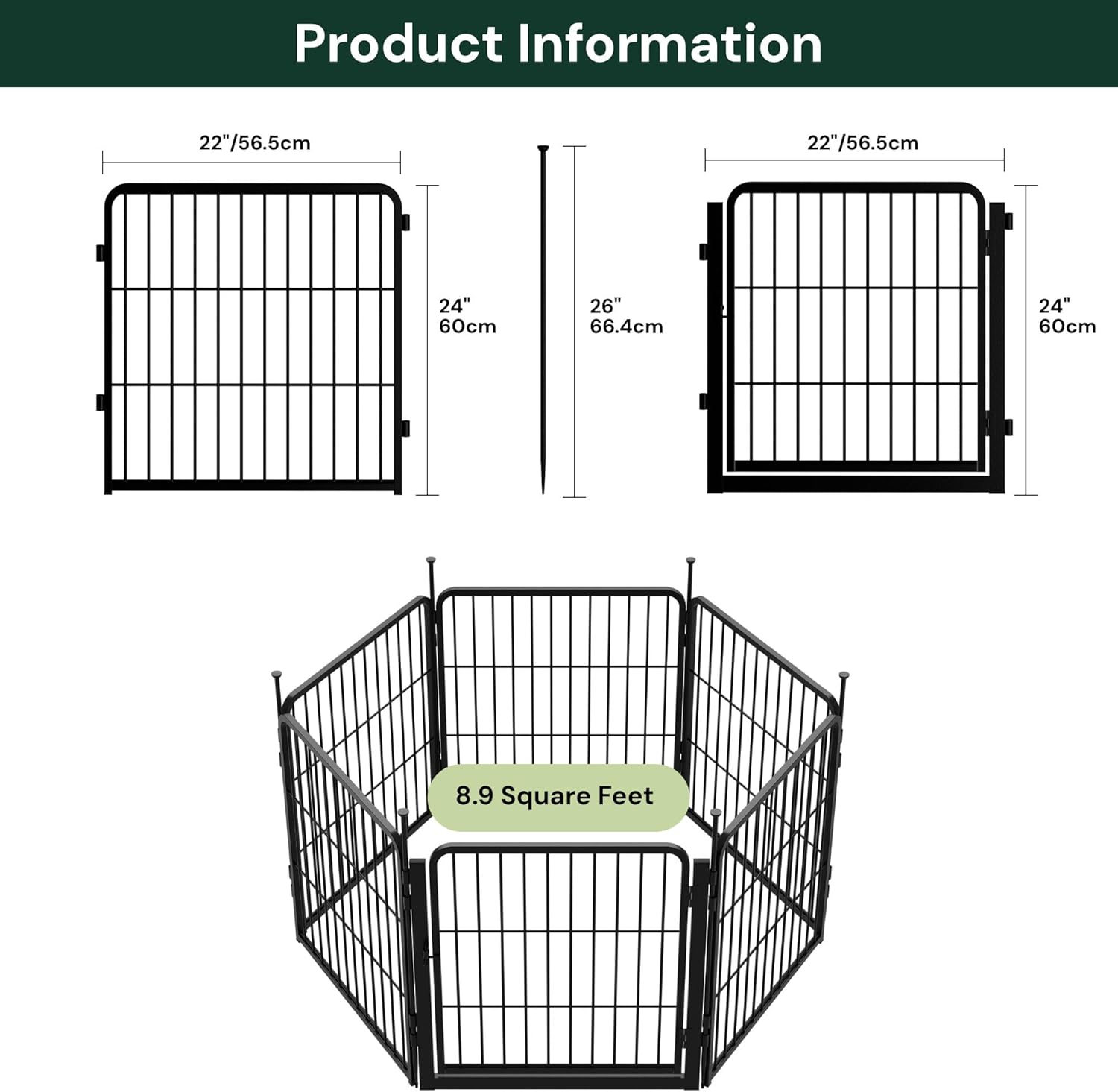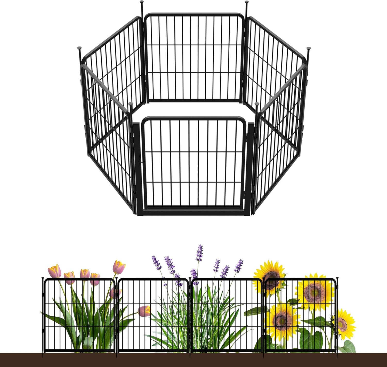Decorative Garden Fence with Gate 24 in(H) x 11.1 ft(L) 6 Panels, Heavy Duty Metal Animal Barrier Fence for Yard, Flower Bed Fencing, Garden Border Fence, Easy Set Up, Black
