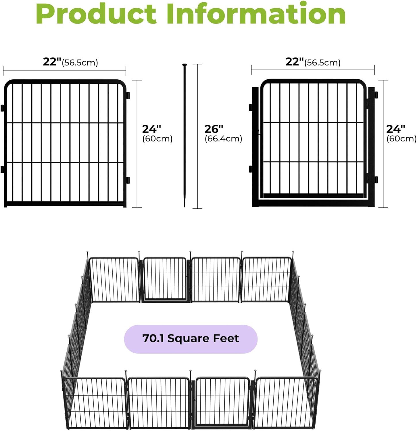 - Easy to Assemble: Say goodbye to complicated assembly! Garden fence with gate could be assembled in just a few minutes without tools, you only need to put the two fence panels facing out and align the rings, and finally insert the pole into the ring to fix it. The pole easily inserts into the soil, providing great stability