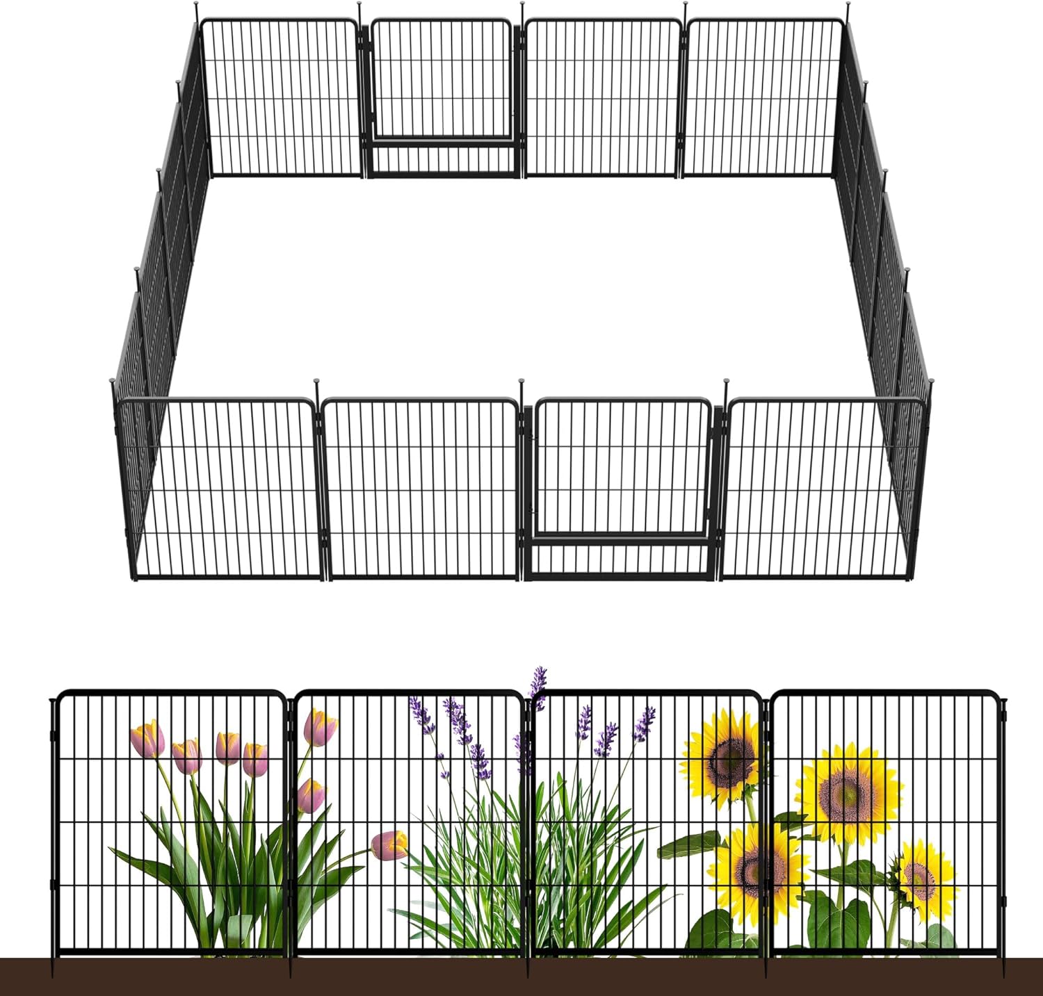 Decorative Garden Fence with Gate 32 in(H) x 35.7 ft(L) 16 Panels, Heavy Duty Metal Animal Barrier Fence for Yard, Flower Bed Fencing, Garden Border Fence, Easy Set Up, Black
