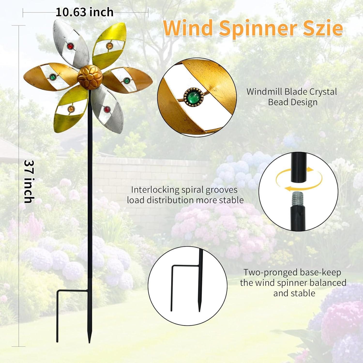 - Optimal 37" Garden Windmill: Large metal pinwheel's blade diameter 10.63" on 37" height pole create perfect visibility for outdoor patios, yard and lawns.