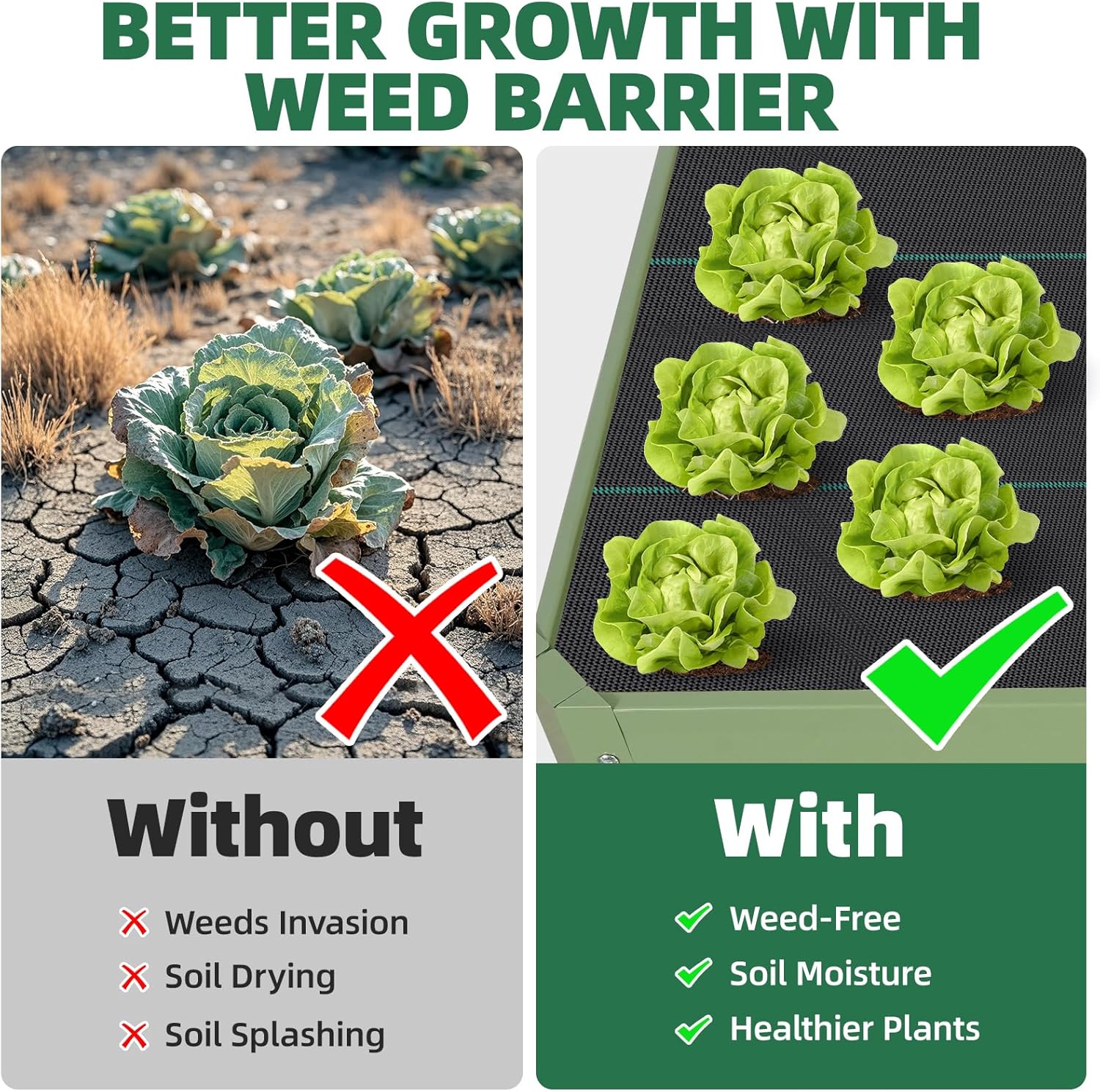 - 【Includes an Additional Weed Barrier Fabric】 Compared to traditional planting beds, G GOOD GAIN raised bed equipped with a perfectly fits 4 feet × 2 feet weed barrier fabric, features high-density and permeable, it can effectively stop weed growth and protects soil health, make your plants grow better, while keeps your garden box neat and beautiful. It is time to experience weed-free, hassle-free gardening!