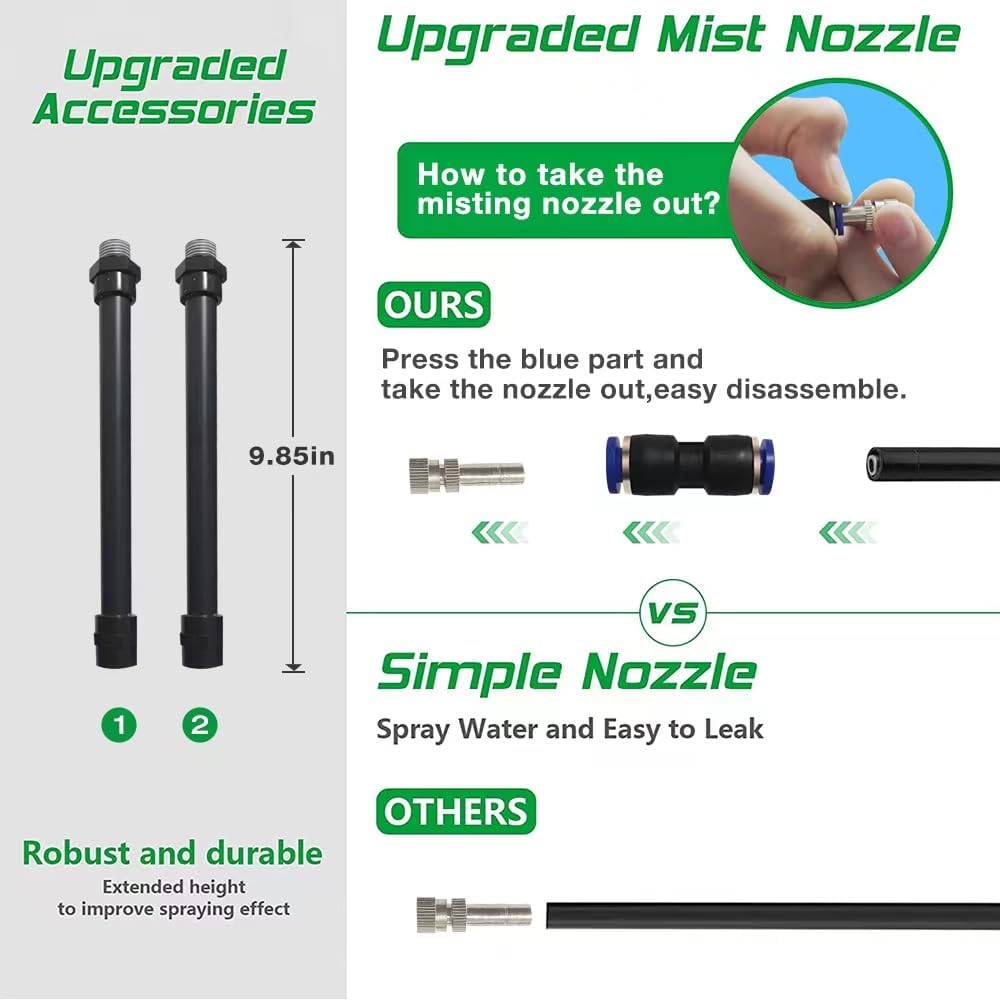 - [High-Quality Materials] The Tripod base of the standing mister is made of high-quality and durable stainless steel. The newly upgraded nozzle features excellent leak-proof and misting performance, allowing you to enjoy wonderful outdoor moments during the hot summer days.