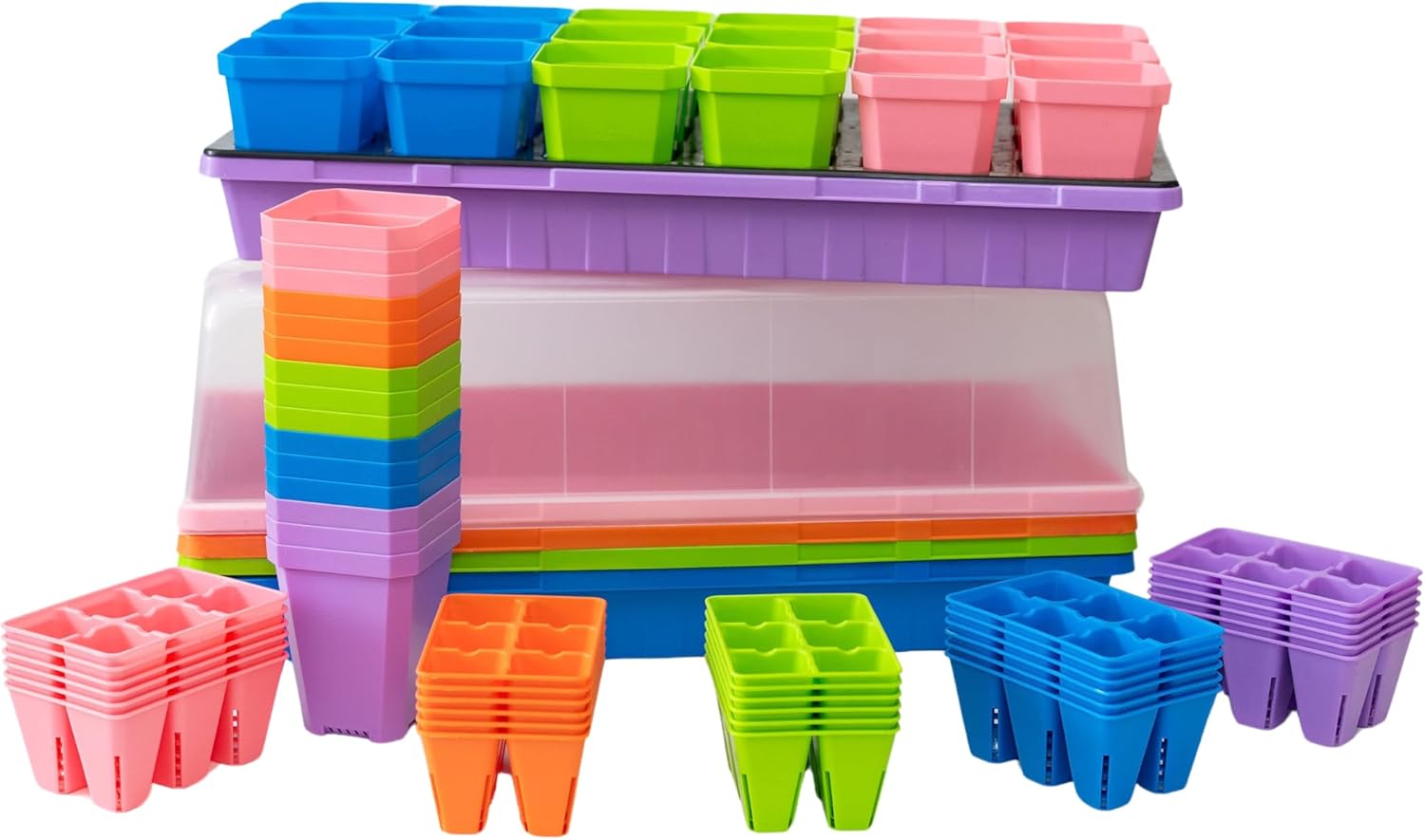 - Complete seed starting kit: 60 professional cell plug inserts, 5 heavy-duty trays, 90 transplant pots, and 5 humidity domes - everything needed to grow your entire garden from seed to transplant