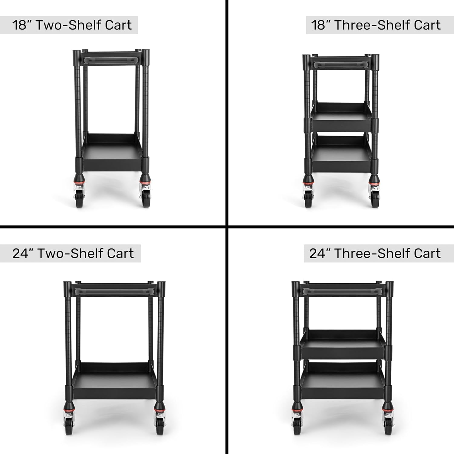 MightyHaul 18" Heavy-Duty Utility Cart with 2 Reversible Shelves, 1,200 lb Capacity, Heavy-Duty Casters for Industrial Use