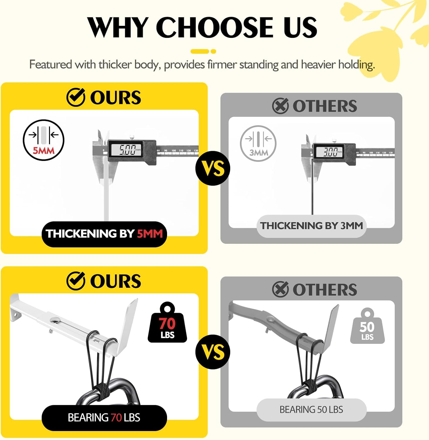 - Enhanced Durability: This window box bracket boasts a thickness of 0.2'', which is 0.08'' thicker than most planter box bracket. This increased thickness ensures exceptional strength and sturdiness, offering long-lasting support that can support up to 70 lbs.