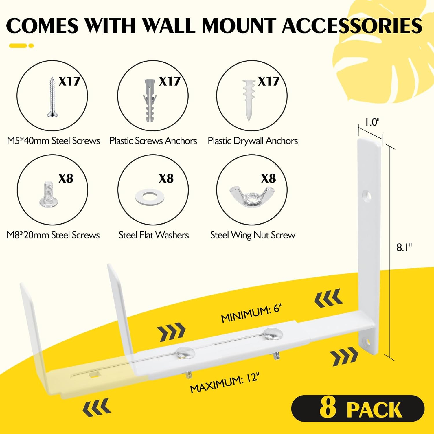 LukLoy Window Planter Box Brackets, 8 Pack Adjustable Heavy Duty Wall Mount Window Flower Boxes Outdoor with Bracket (6 to 12 in), with 70lbs Capacity, White