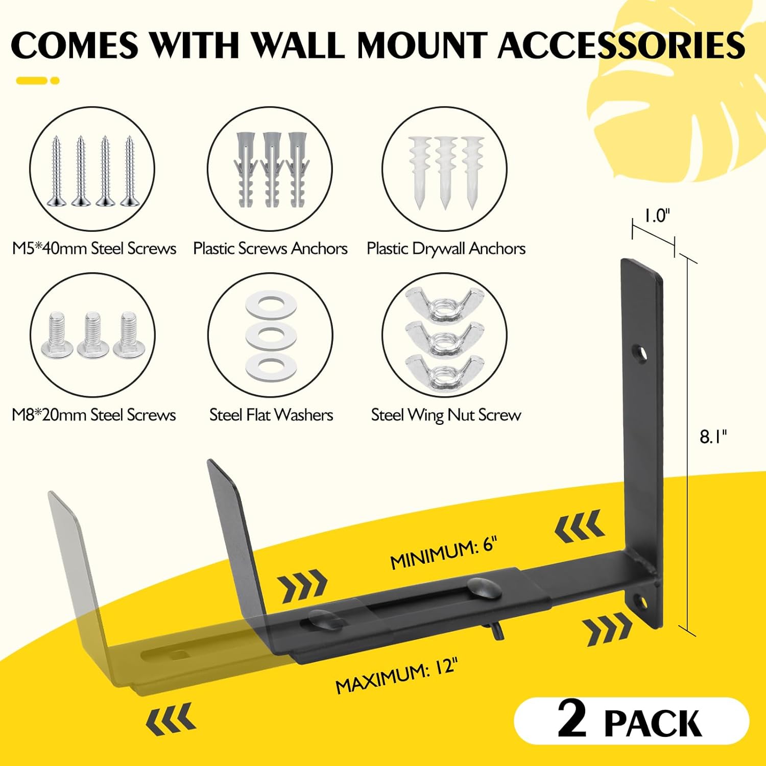 - Adjustable Base Design: Our planter box brackets features a versatile and adjustable design with minimum 6'' and the maximum 12'' depth (Front To Back), allowing you to customize the width to suit your preferences.