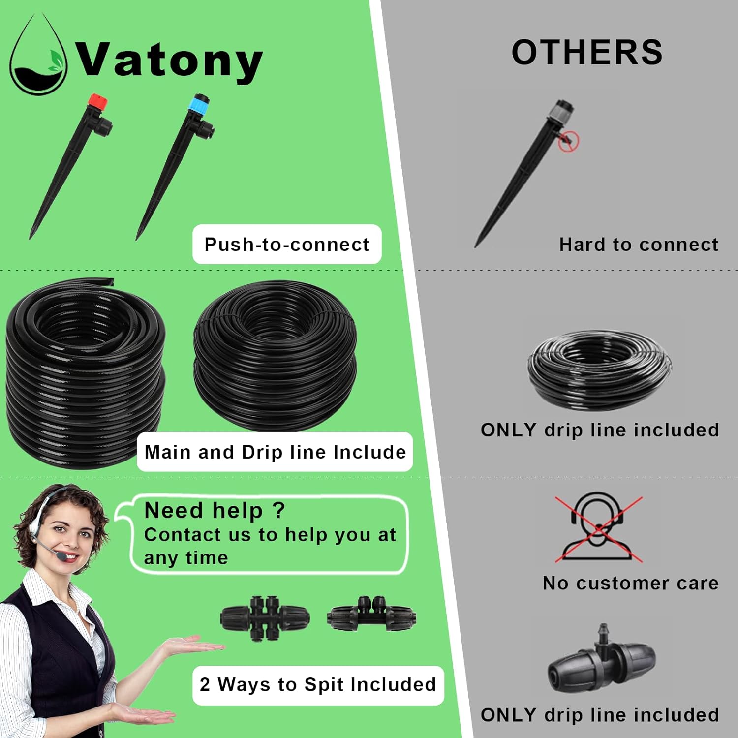- 💧 【Smart Automatic Drip Irrigation System】:Easily create a high-efficiency, water-saving irrigation solution! This kit features precision drip technology with smart water flow control, ensuring plants receive even and consistent hydration, reducing water waste, and keeping your garden in optimal growing condition at all times,great for atomization, lawn irrigation, patios, roof cooling,agriculture, vegetable , greenhouse, flower bed, swimming pool misting fog cooling irrigation etc.