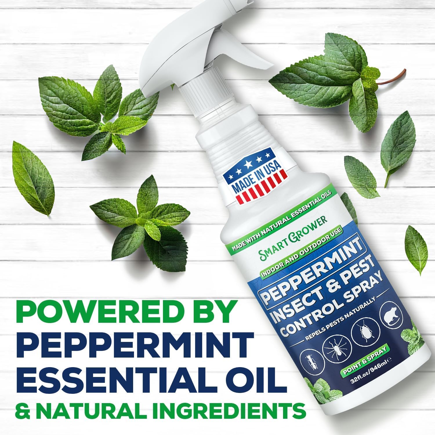 All Natural Peppermint Oil Insect & Pest Control Spray Repels Mice, Spiders, Ants, for Home, Indoor, Outdoor, Garden Maximum Strength Smart Grower Ready to Use 32 FL OZ