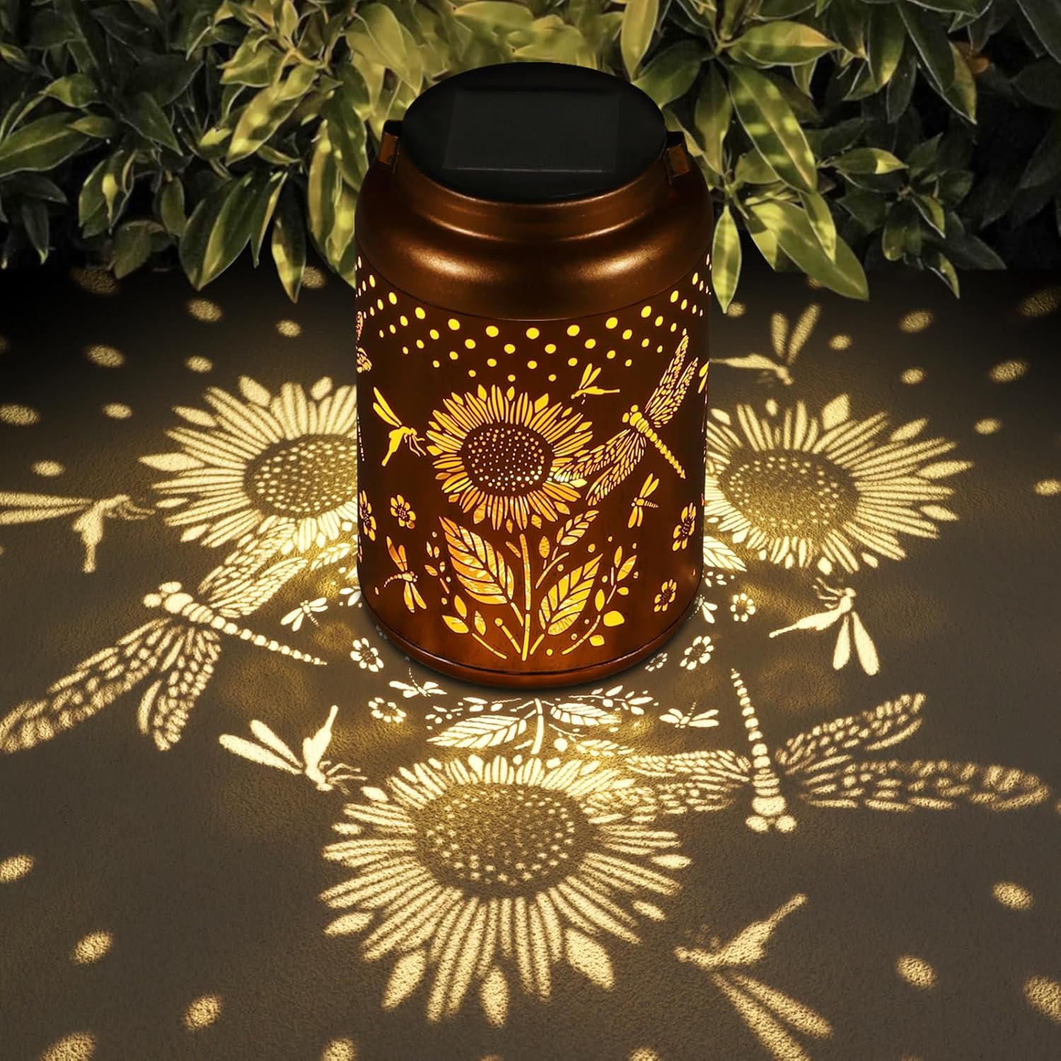 Solar Lanterns Outdoor Waterproof Hummingbird Garden Decor Christmas Gifts for Women Mom Grandma Hanging Lights Metal Decoration Outside for Yard, Patio,Backyard,Porch(Dragonfly and Sunflower)