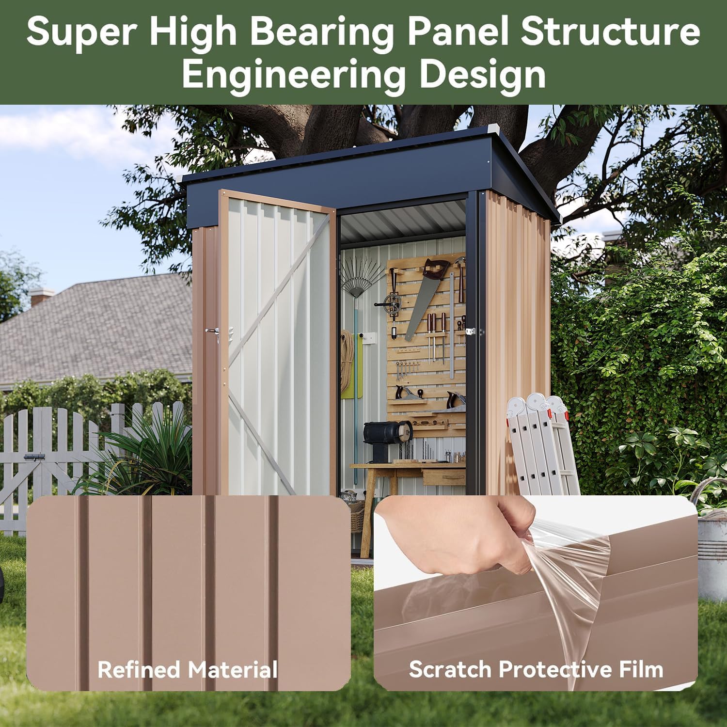 - Outdoor Shed: This storage shed is made of high-quality galvanized steel and covered with a powder-coated finish. Its durable design ensures that it can withstand harsh weather conditions and provide long-lasting outdoor use.