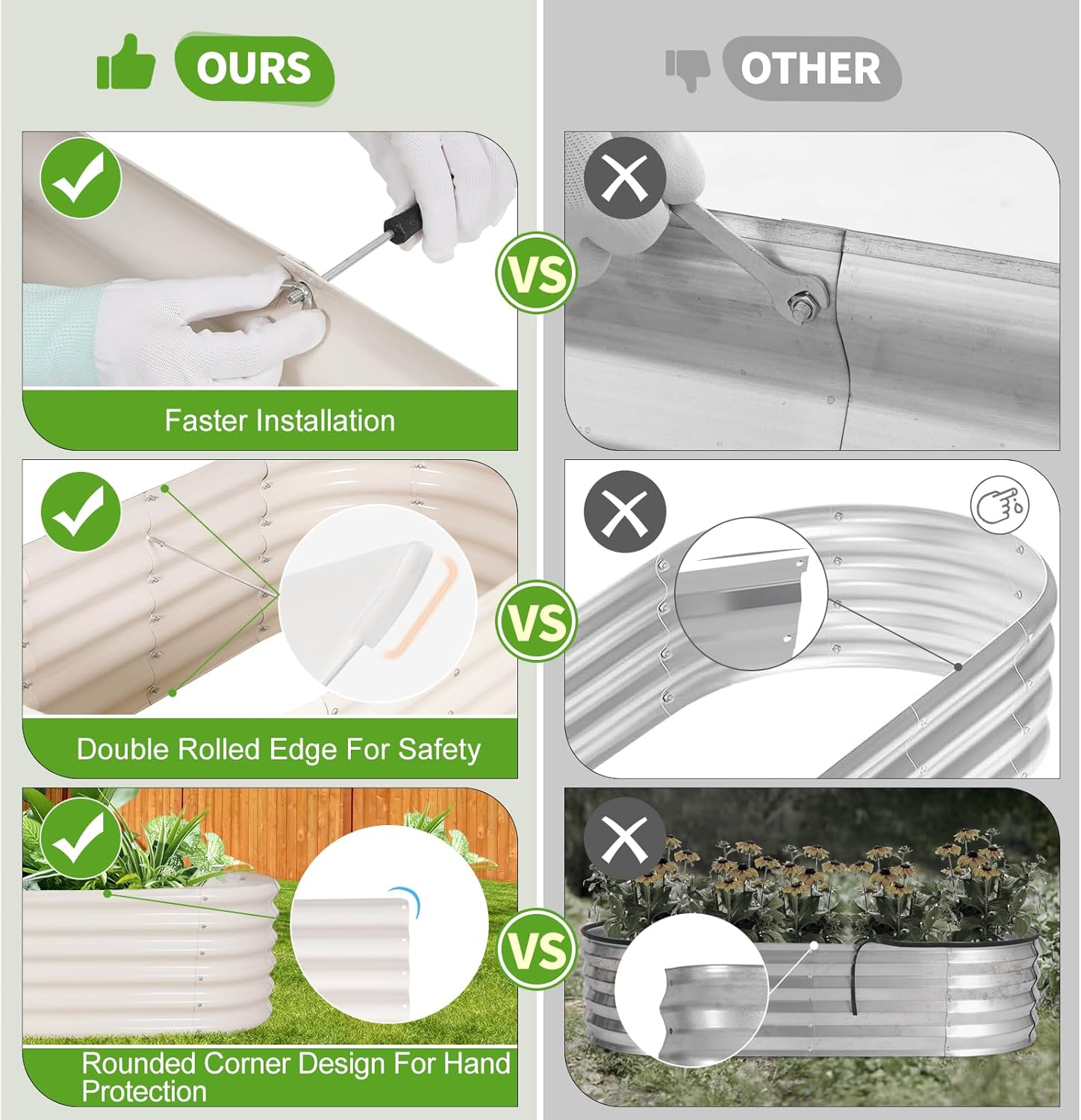 - 【Upgrade Quality & Structure 】The raised garden bed is made of thick galvanized metal with a surface spray coating, which is rust proof and anti-corrosion. Can be used for a long time. The oval design ensures uniform surface force and prevents deformation. More durable than other raised planter box, becoming a good helper for your garden