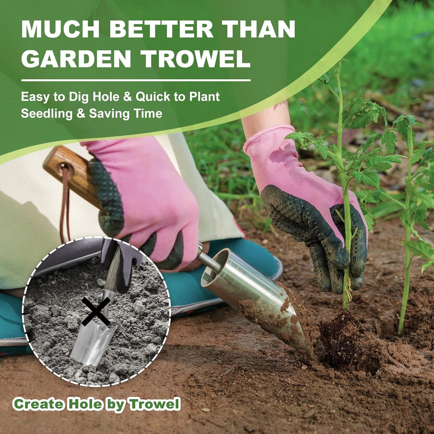 - 【Much Better Than Garden Trowel】A hand trowel makes the hole too wide and sometimes not deep enough, but this small bulb planter is perfect, just twist and turn once in the ground, and you will get an ideal depth hole to plant a bulb. Save a lot of digging time than regular garden shovels and make planting bulbs so much easier.