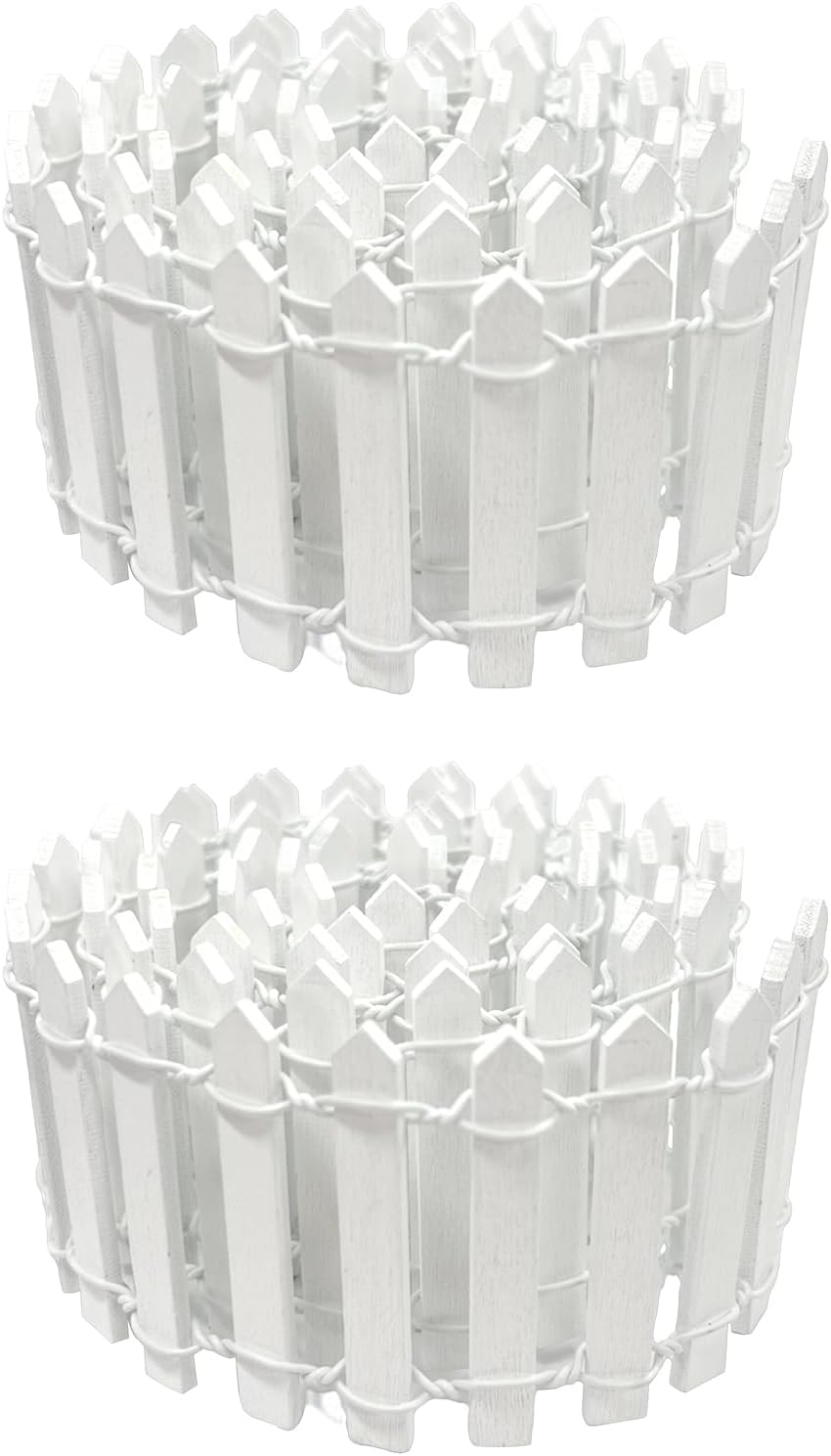 35 Inches Mini Fairy Garden Fence DIY Small Wood Decorative Picket Fence Micro Landscape Miniature Ornaments for Dollhouse, Crafts, Diorama Project, Plant Pot (White(2 PCS))