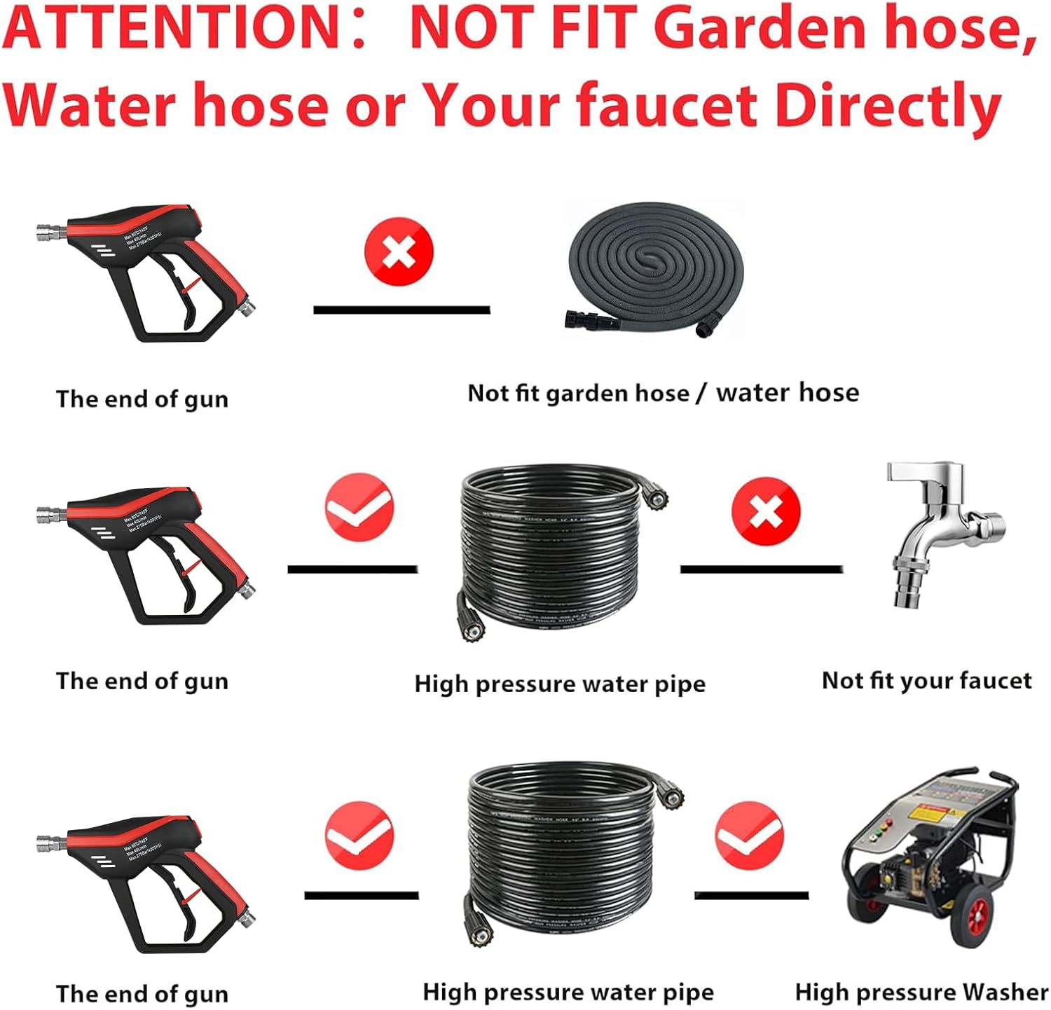 - 【Attention】Not Fit Garden Hose, Water Hose or Your Faucet Directly, it must be connected to the hose of the high pressure washer before it can be used normally.
