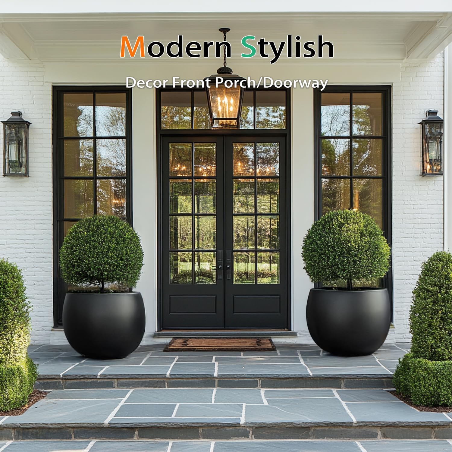Ball Concrete Planter Outdoor Indoor, Large Tall Cement Plant Pots for Trees Flowers (Black, 20 inch)
