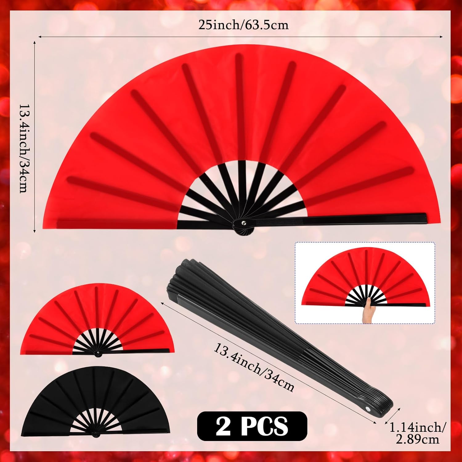 - Material and Measurement: made of quality plastic and black and red nylon cloth, lightweight and sturdy fabric, and each fan measures approx. 13.4 x 25 inches/ 34 x 63.5 cm (L x W, unfold state)