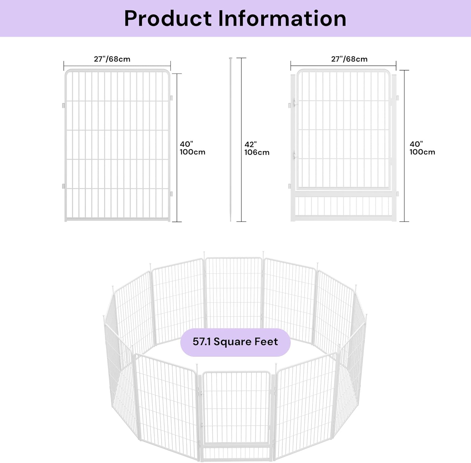 Decorative Garden Fence with Gate 40 in(H) x 26.8 ft(L) 12 Panels, Heavy Duty Metal Animal Barrier Fence for Yard, Flower Bed Fencing, Garden Border Fence, Easy Set Up, White