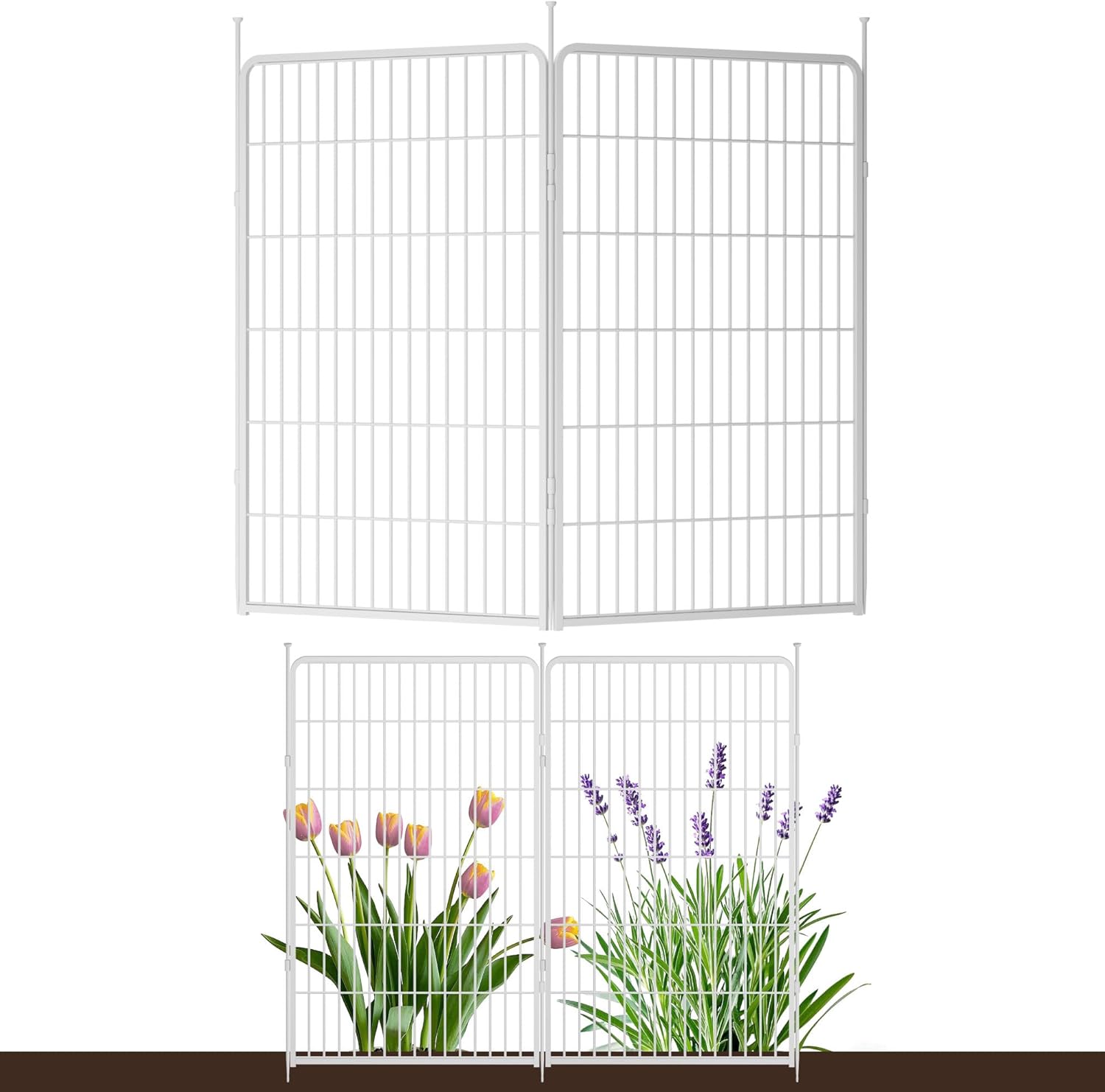 Doorless Garden Fence 45 in(H) x 4.5 ft(L) 2 Panels, Heavy Duty Metal Animal Barrier Fence, No Dig Fence for Dogs, Rabbit Fence for Garden, White