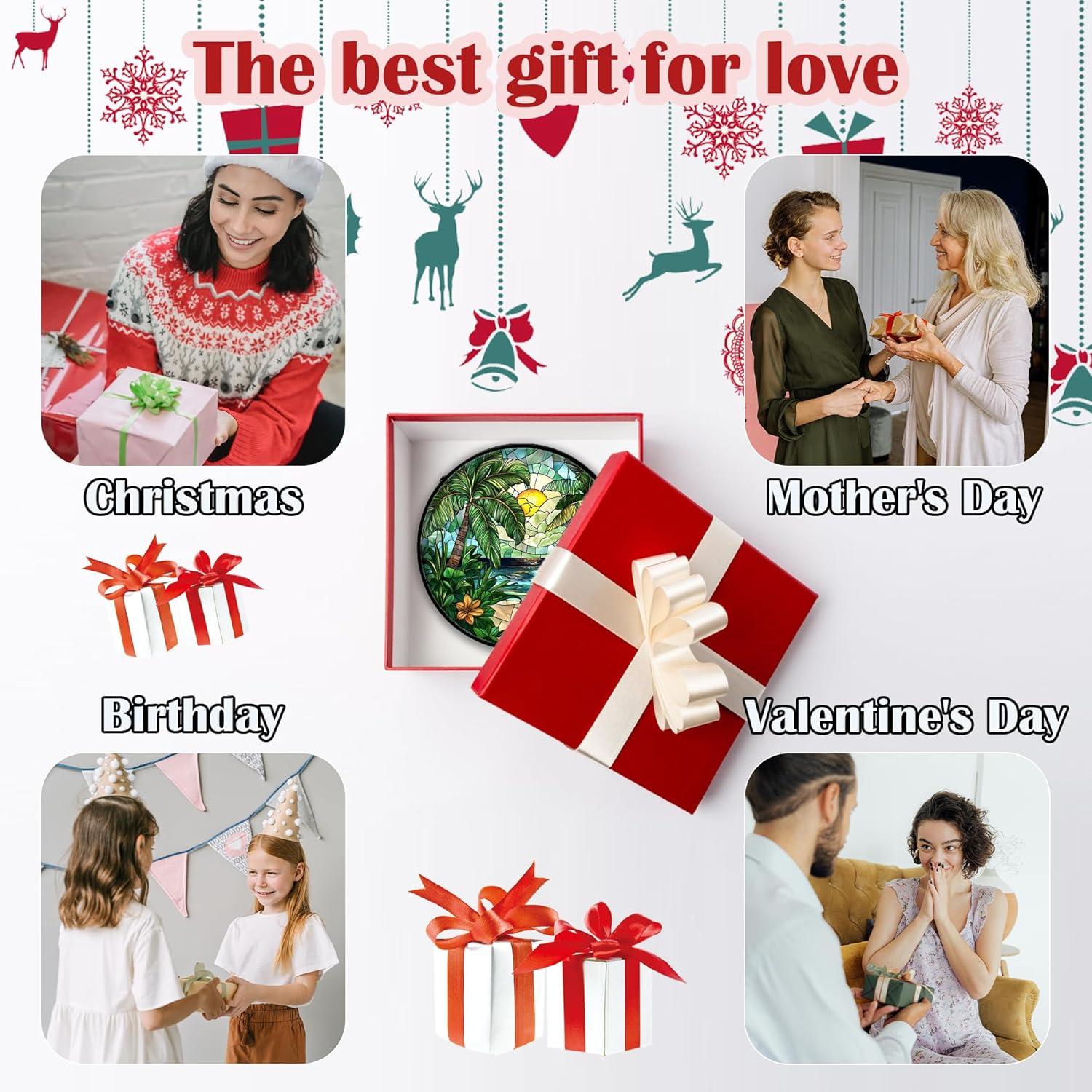 Stained Glass Window Hanging, Green Beach Scenery Suncatcher Diamond Glass Panel Hangings Sun Catchers Decor for Birthday for Women, Men, Wife, Aunt, and Mom 14.9x14.9 in
