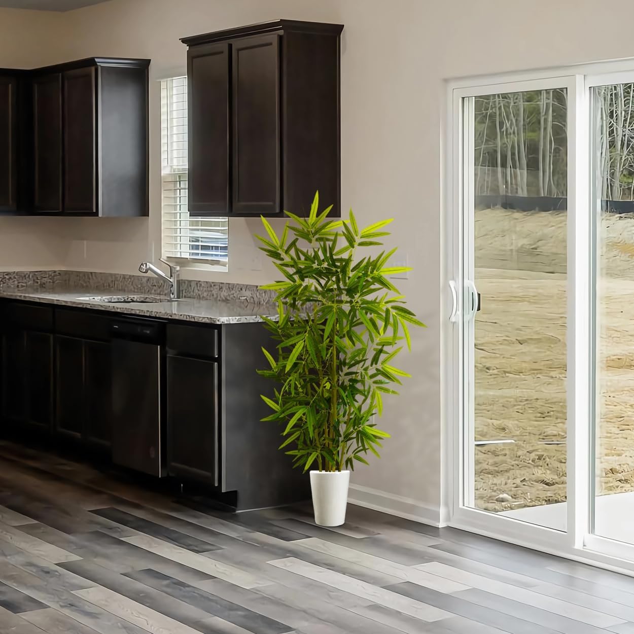 - 5ft tall artificial bamboo tree with luxury white planter(6.9"Diameter,6.9"Height)
