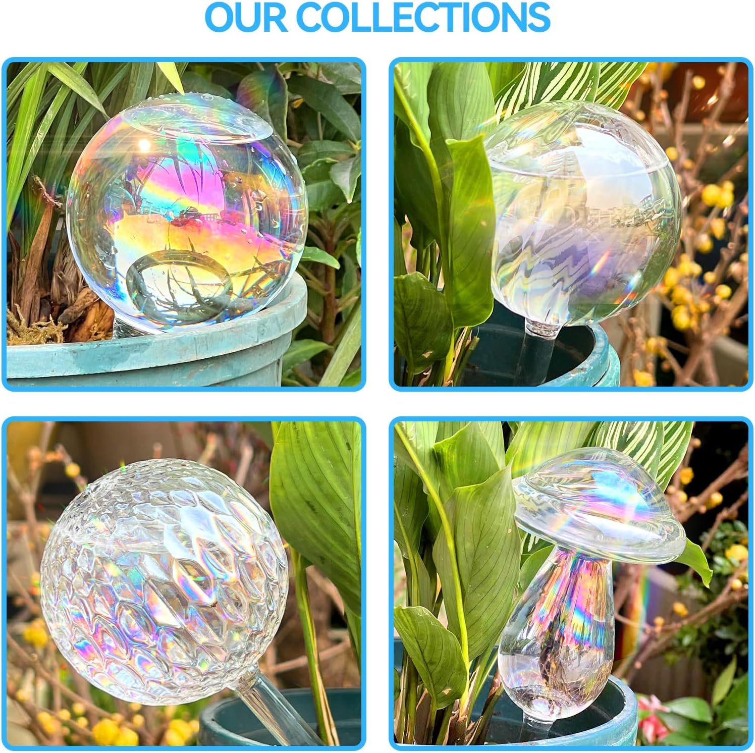 - 【Decorative & Functional Plant Watering Globes】More than just practical, these plant bulbs for watering add a charming touch to your home or garden decor. Iridescent water globes float above the flowerpot, and the sunlight shines down, adding unique charm and warmth to your plants.