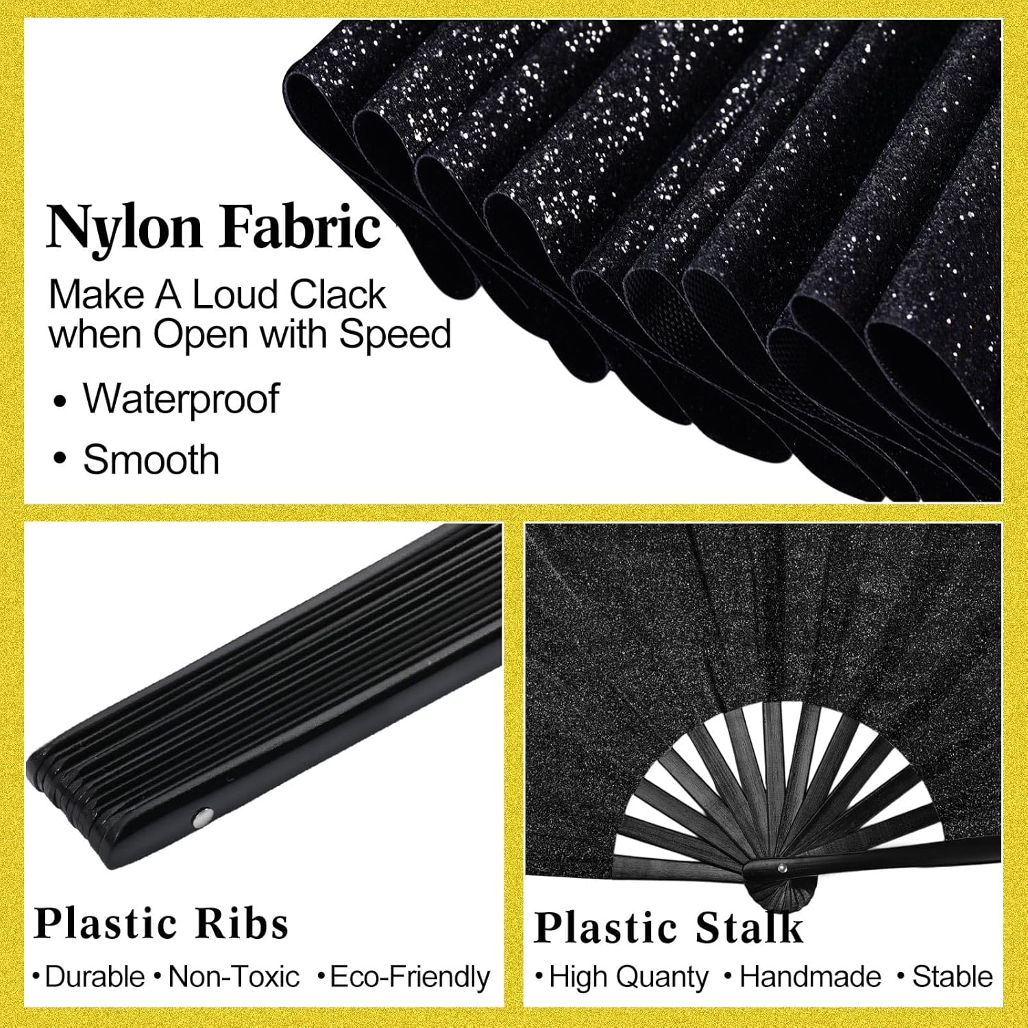 - Material and Measurement: made of quality plastic and glitter black and gold nylon cloth, lightweight and sturdy fabric, and each fan measures approx. 13.4 x 25 inches/ 34 x 63.5 cm (L x W, unfold state)