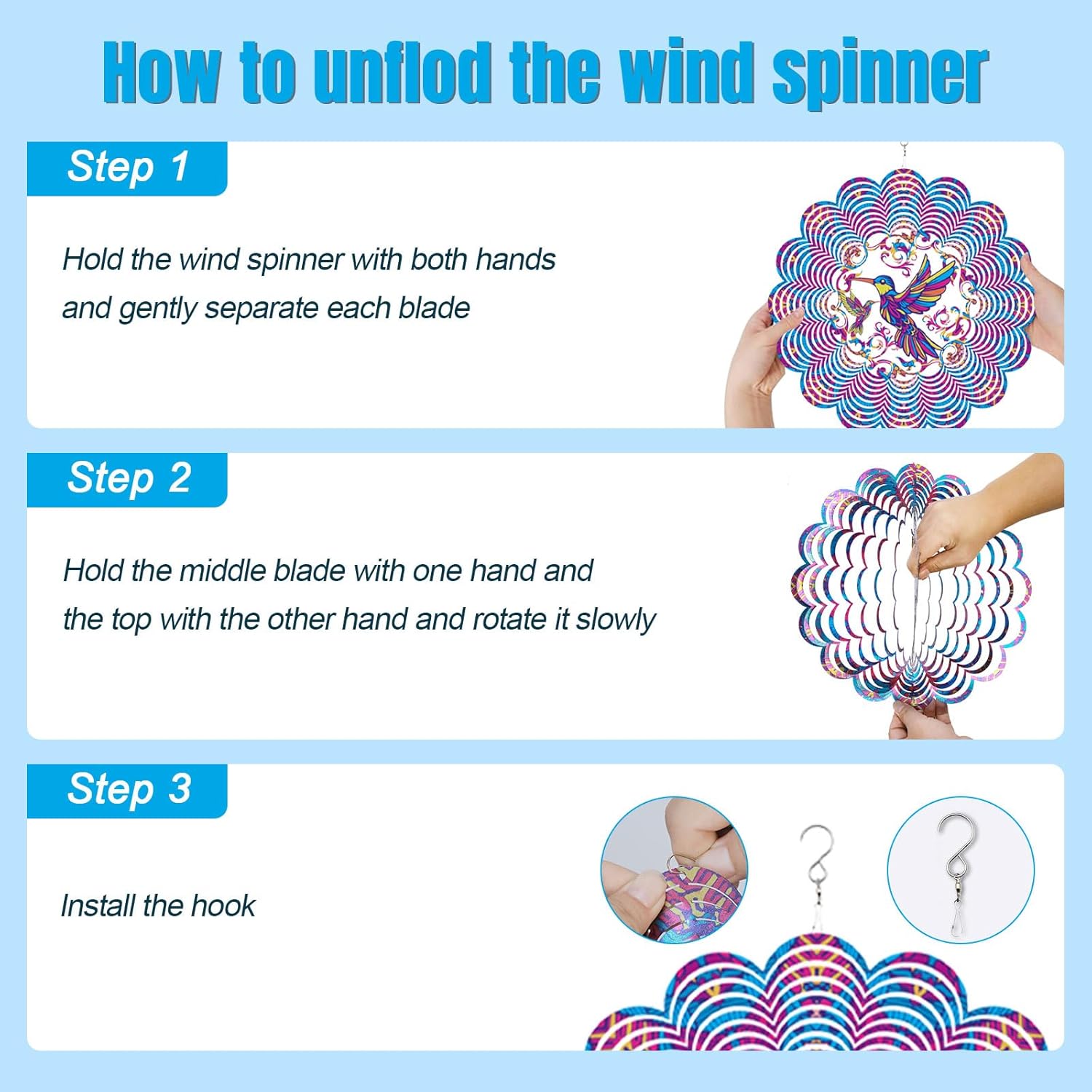 - 【Easy to Use and Hang】The wind spinner includes a 360° S-shaped hook and an isometric pendant. It is flat in the initial state, then hold the front of the wind spinner with your left hand and press down, hold the back of the wind spinner with your right hand and push up, and twist the layers evenly into a fan shape until you get the angle you want so that you will form a magical 3D masterpiece.