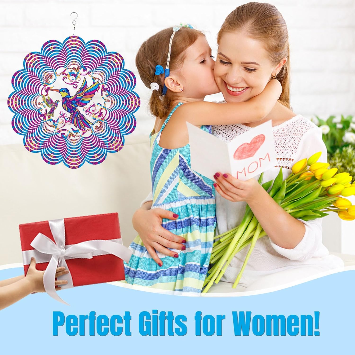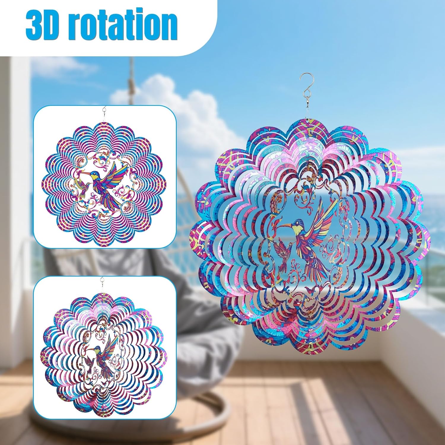 Wind Spinners Outdoor, Hummingbird Metal 3D Hanging Garden Decor, 12-inch Stainless Steel Wind Spinner with Tail Spinner, Wind Sculptures for Patio Lawn Yard, Ornament Gift for Women/Men