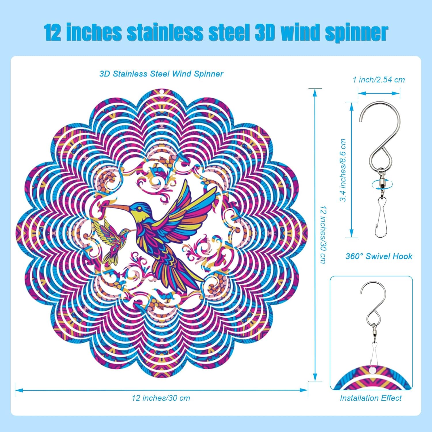 - 【Durable Stainless Steel Wind Spinner】The 30cm/12-inch 3D wind spinner decoration is made of solid stainless steel material and is formed into a bright and shiny shape through laser cutting technology.