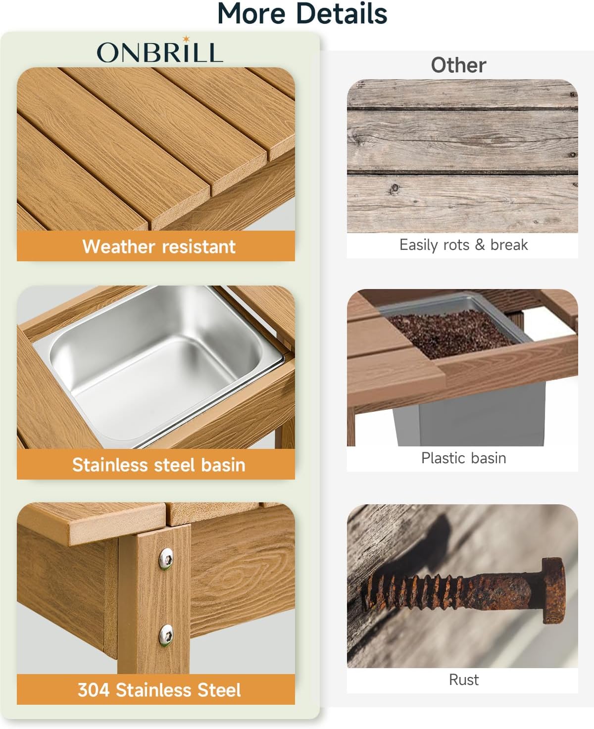 - Durable HDPS Material – Crafted from high-quality polystyrene and stainless steel, this potting bench resists fading from sunlight and won’t rot due to moisture. It's sturdy plastic wood construction ensures long-lasting outdoor use without compromising quality or appearance