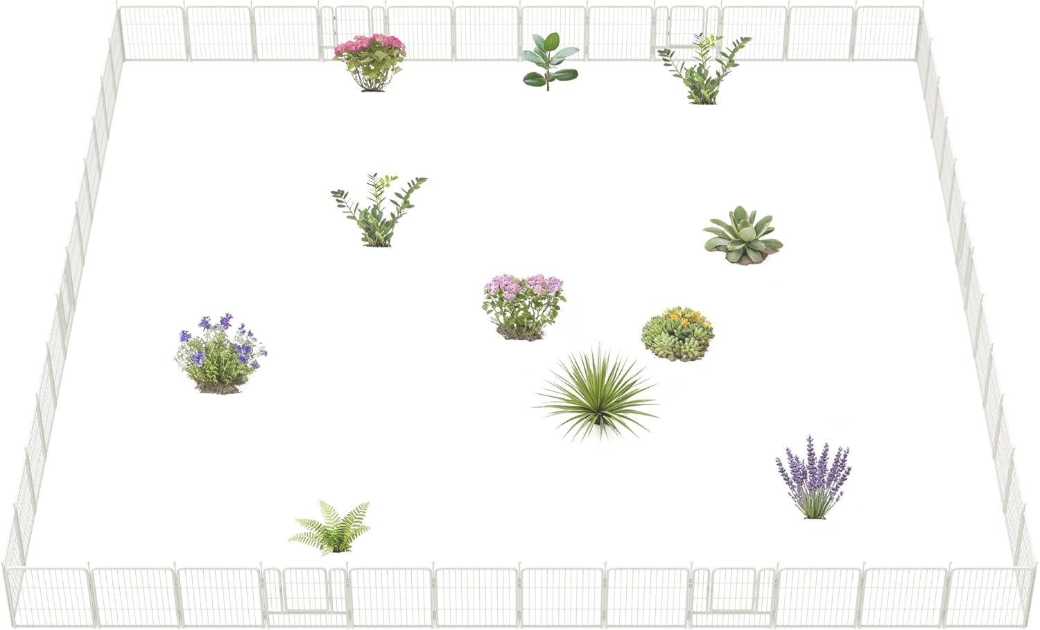 - Dimension: The height of each piece is 32 inch and the width is 2.28 ft, with a total of 42 panels and 6 pieces of doors. It's 109.4 ft long to connect all of them. The stake is 2.9 ft long, with a total of 51 pieces.