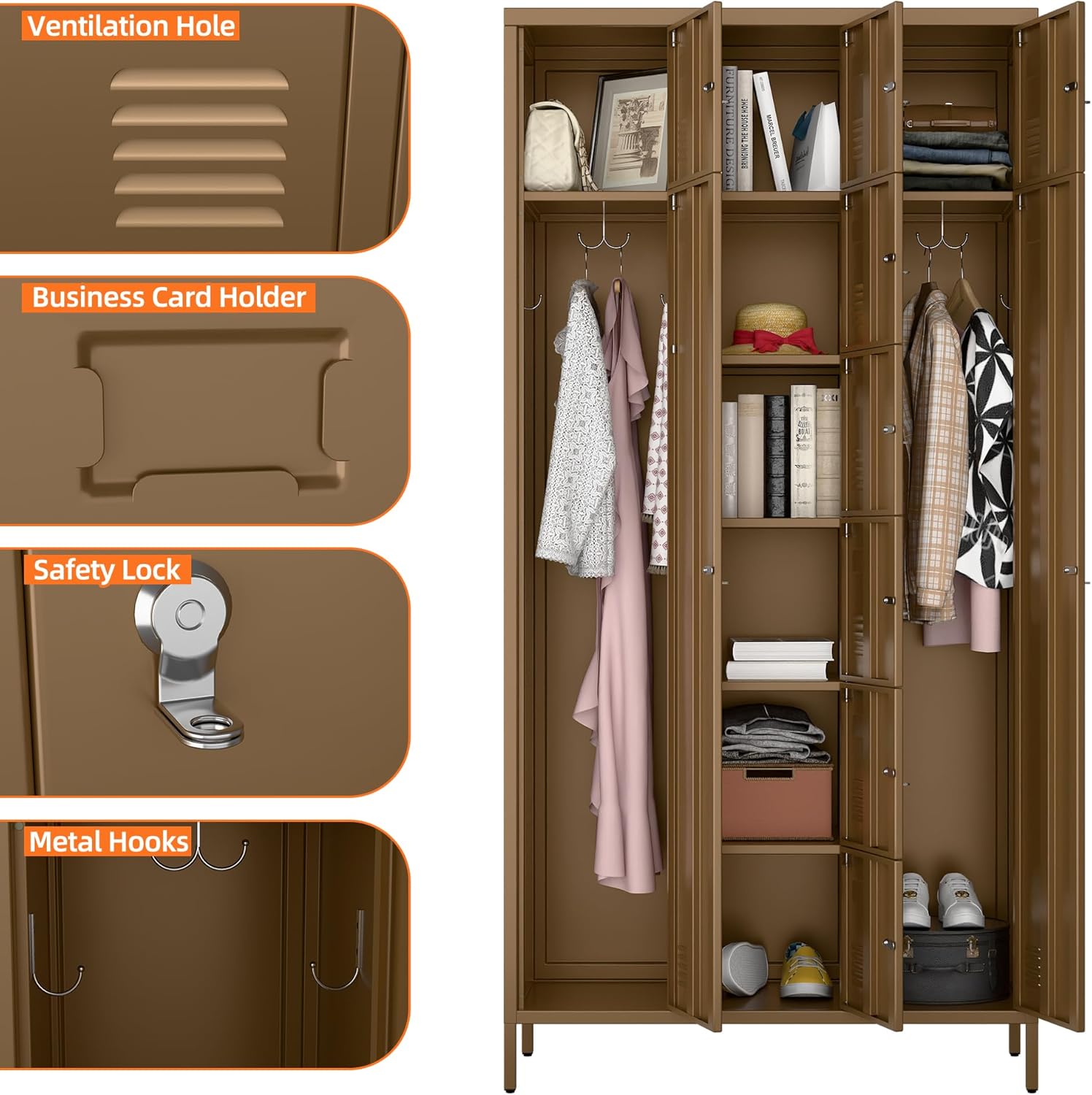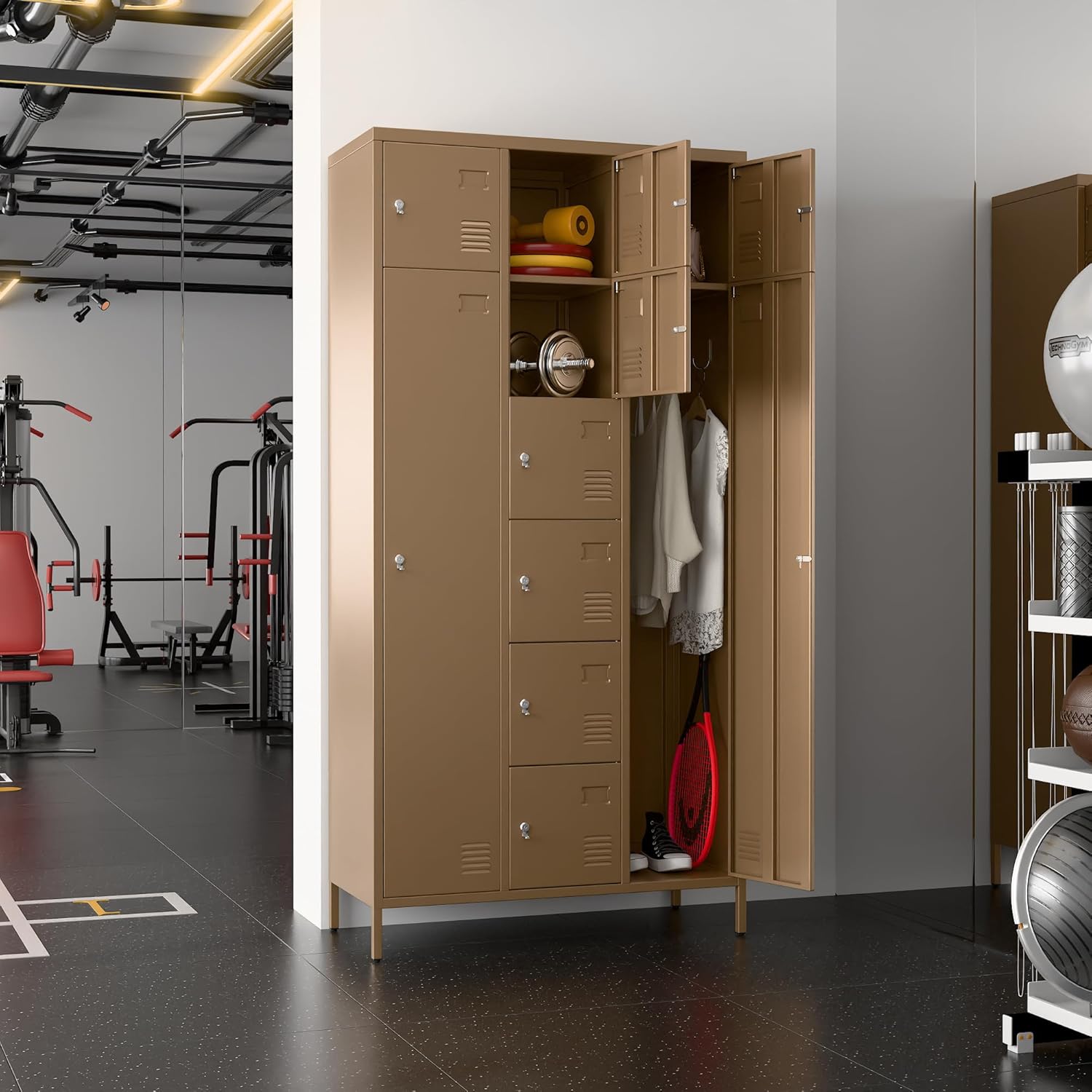 72" H Metal Storage Lockers with Doors,Industrial Combination Employee Lockers with Hooks for Office,Home Gym,School,Assembly Required,8+2Doors,Coffee