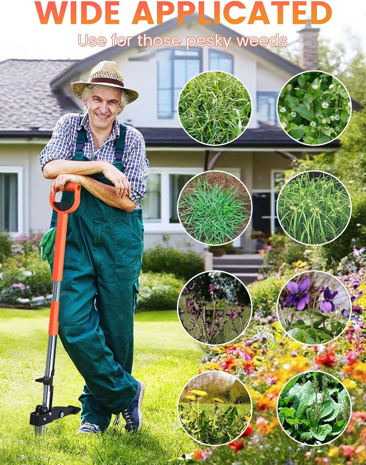 - 【Versatile Application】Our stand-up garden weeder is suitable for a variety of plants and weeds—including thistles, dandelions, crabgrass, chickweed, sedge, and more. Its long handle makes it an excellent gardening tool for moms, seniors, or anyone looking to make gardening easier and less strenuous.
