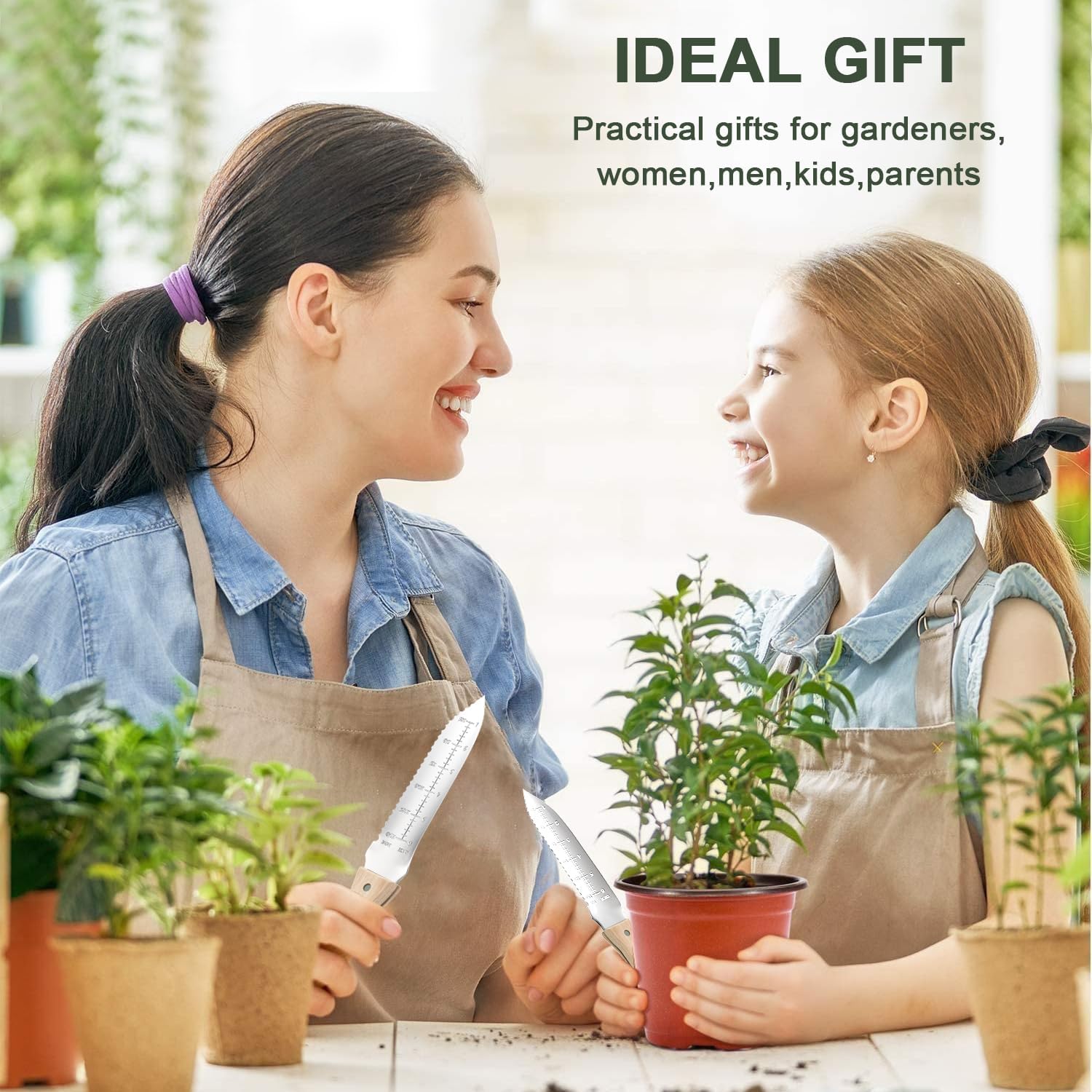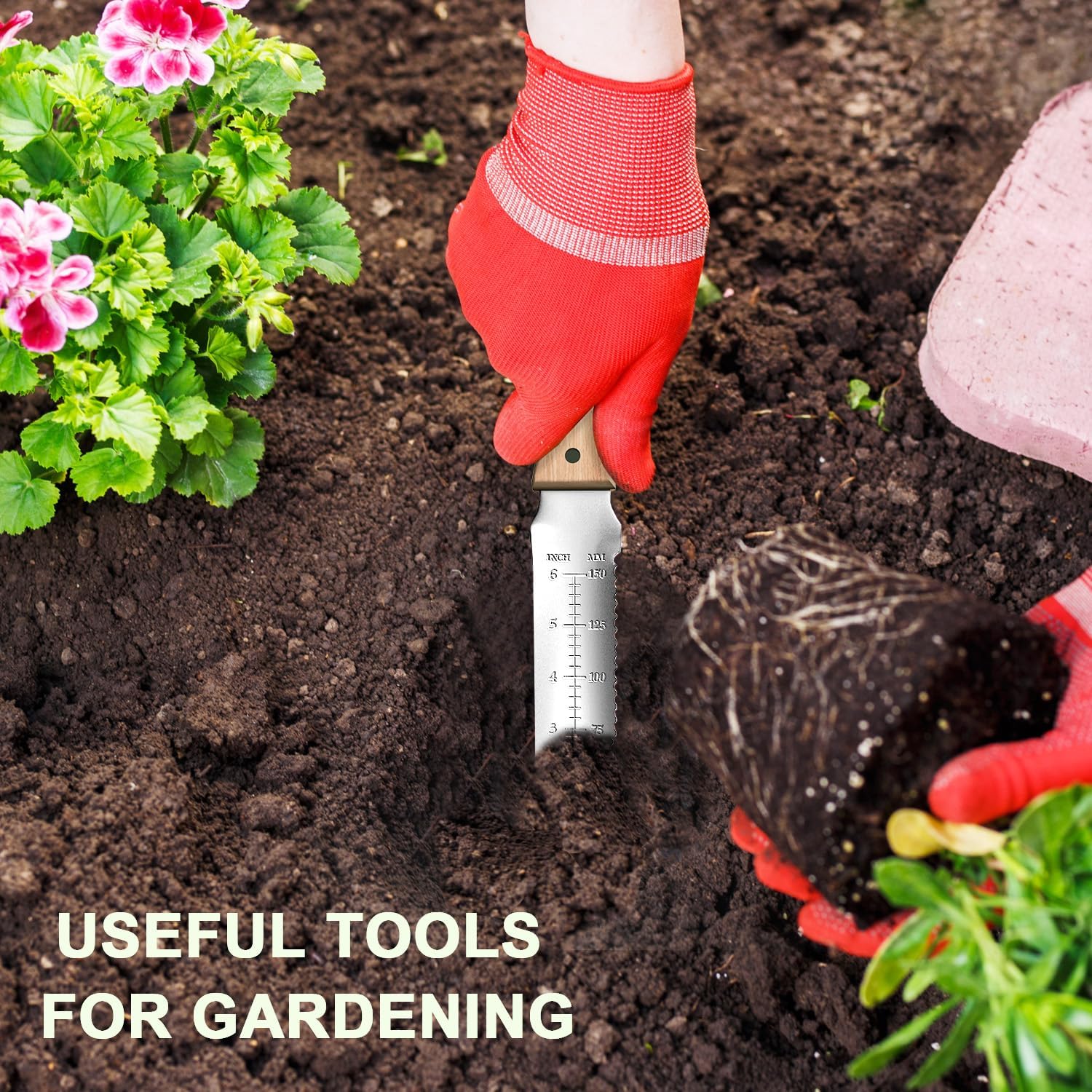 - Precision Depth Markings & Serrated Edge Plant bulbs and seedlings perfectly every time! Clear inch markings on the blade take the guesswork out of planting depth. The sharp serrated edge on one side effortlessly cuts through tough roots, twine, bags, and sod, adding another layer of utility to this garden spade alternative.