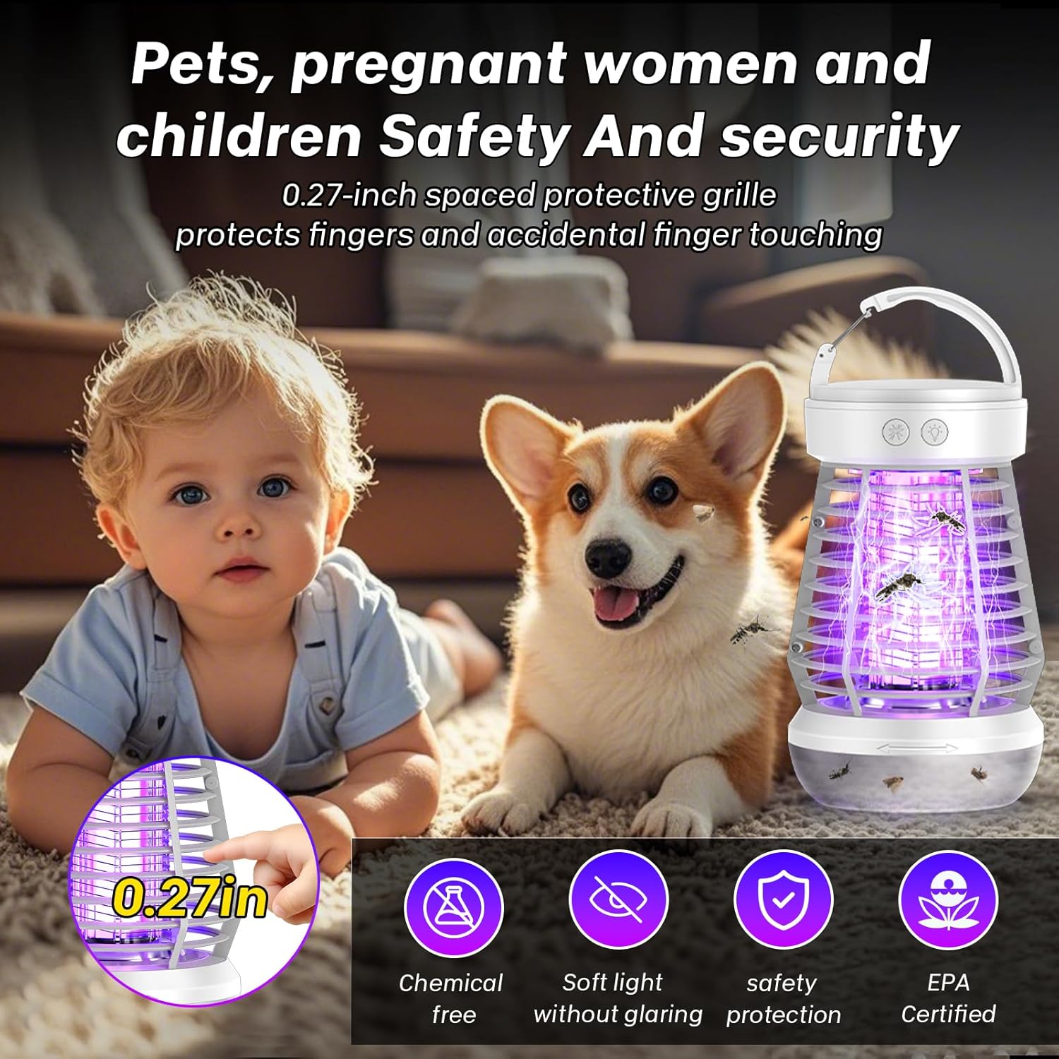- 【Warm Light & Purple Light, 3 in 1】This portable exterminator is a powerhouse of functionality, designed to not only eliminate pesky bugs but also provide desk lamp-level lighting. Whether you're at home or out camping, it effectively keeps flying insects at bay while doubling as a reliable camping ligh