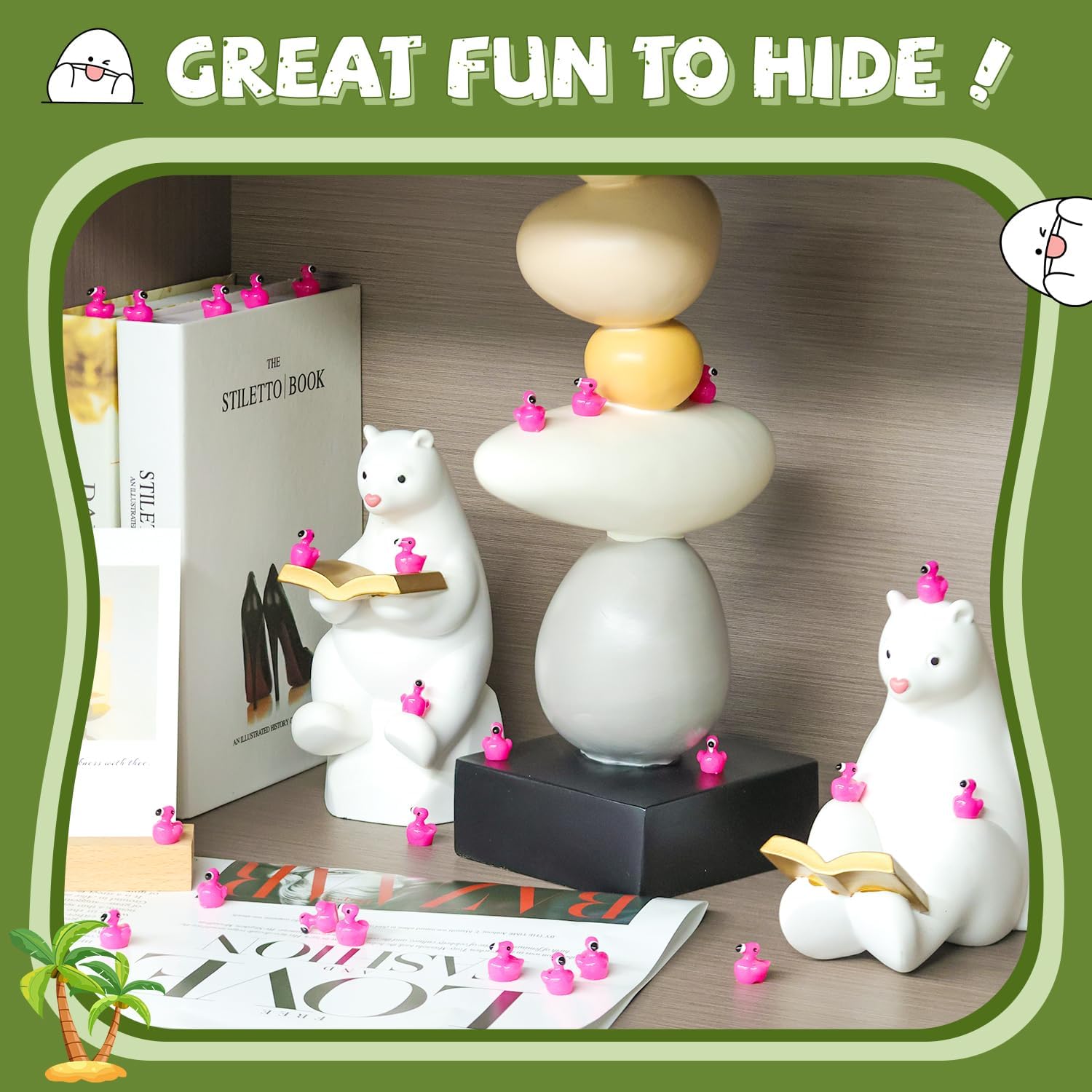 - PACKAGE CONTENT -- One Package includes 110 pcs rose pink mini flamingo ducks, each tiny figure is crafted with intricate details, making them cute and eye-catching.Use them to add charm and whimsy to dollhouses, or having hide games to enhance fun