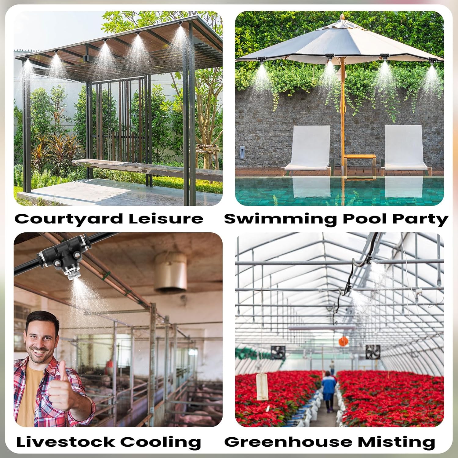 - 【Ideal for Multiple Uses】Stay cool in hot summer with these misting nozzles.This misting nozzles kit is perfect for creating a refreshing outdoors play area for humans,providing cooling for pets during the summer heat, or adding a cool mist around your pool for a refreshing swim experience