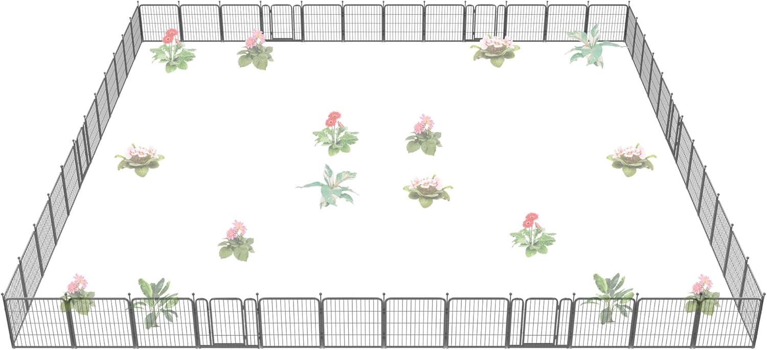 - Dimension: The height of each piece is 24 inch and the width is 1.90 ft, with a total of 42 panels and 6 pieces of doors. It's 91.3 ft long to connect all of them. The stake is 2.2 ft long, with a total of 51 pieces.