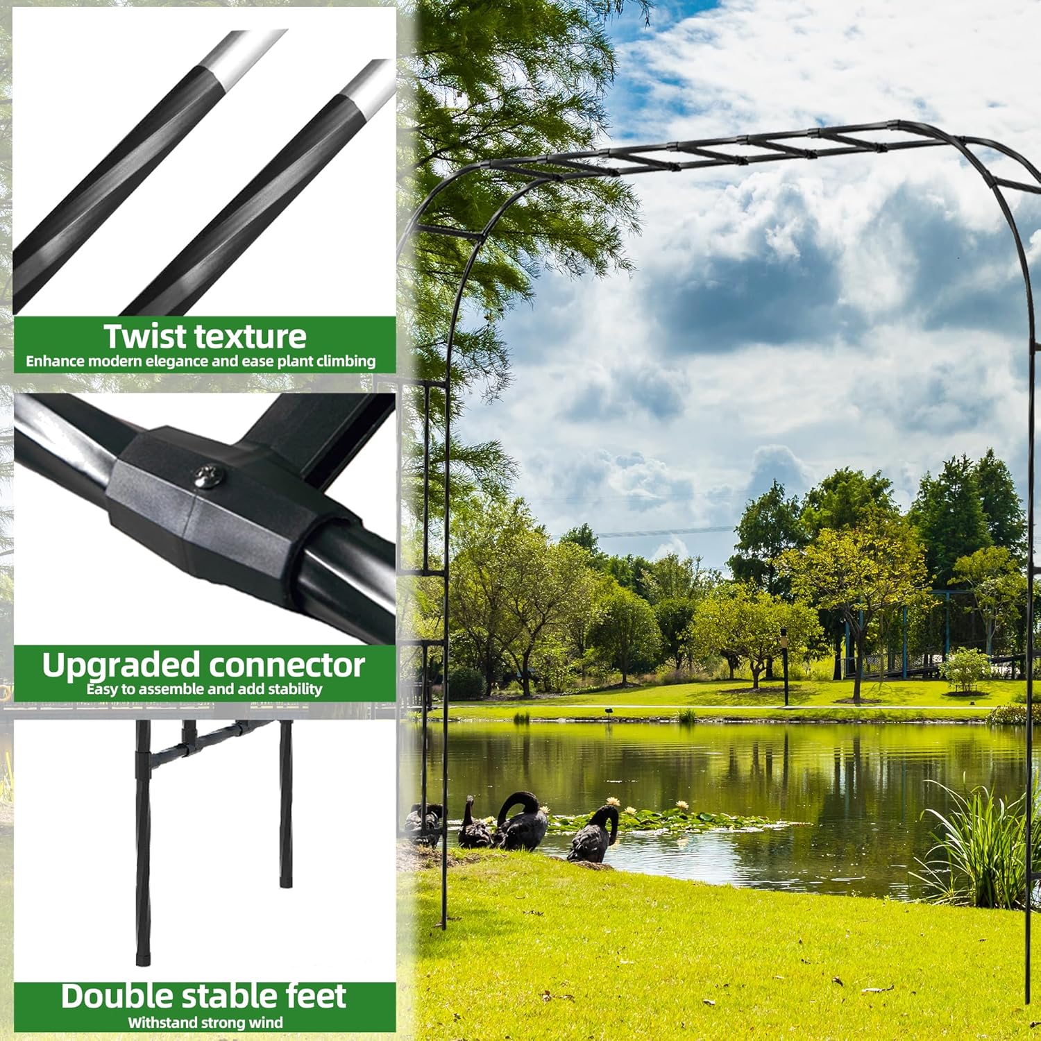 Garden Arch Trellis, Trellis Arch for Climbing Plants Outdoor, 10.5 x 7.9FT Metal Full Garden Arbor, Trellises for Patio Lawn Backyard, Large Garden Archway Decoration Black 126" x 94.5in