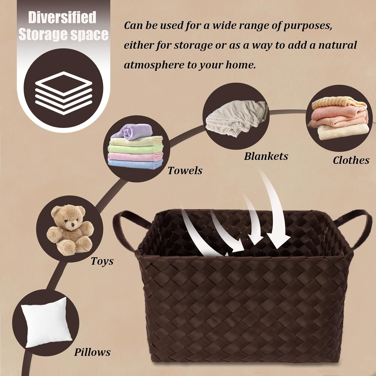Handwoven Clothes Basket Laundry Hampers Large Wicker Storage Baskets for Shelves Blankets Closet Storage Bins Car Bedroom Bathroom Organizers and Storage Bath (Pack of 4, Espresso color)