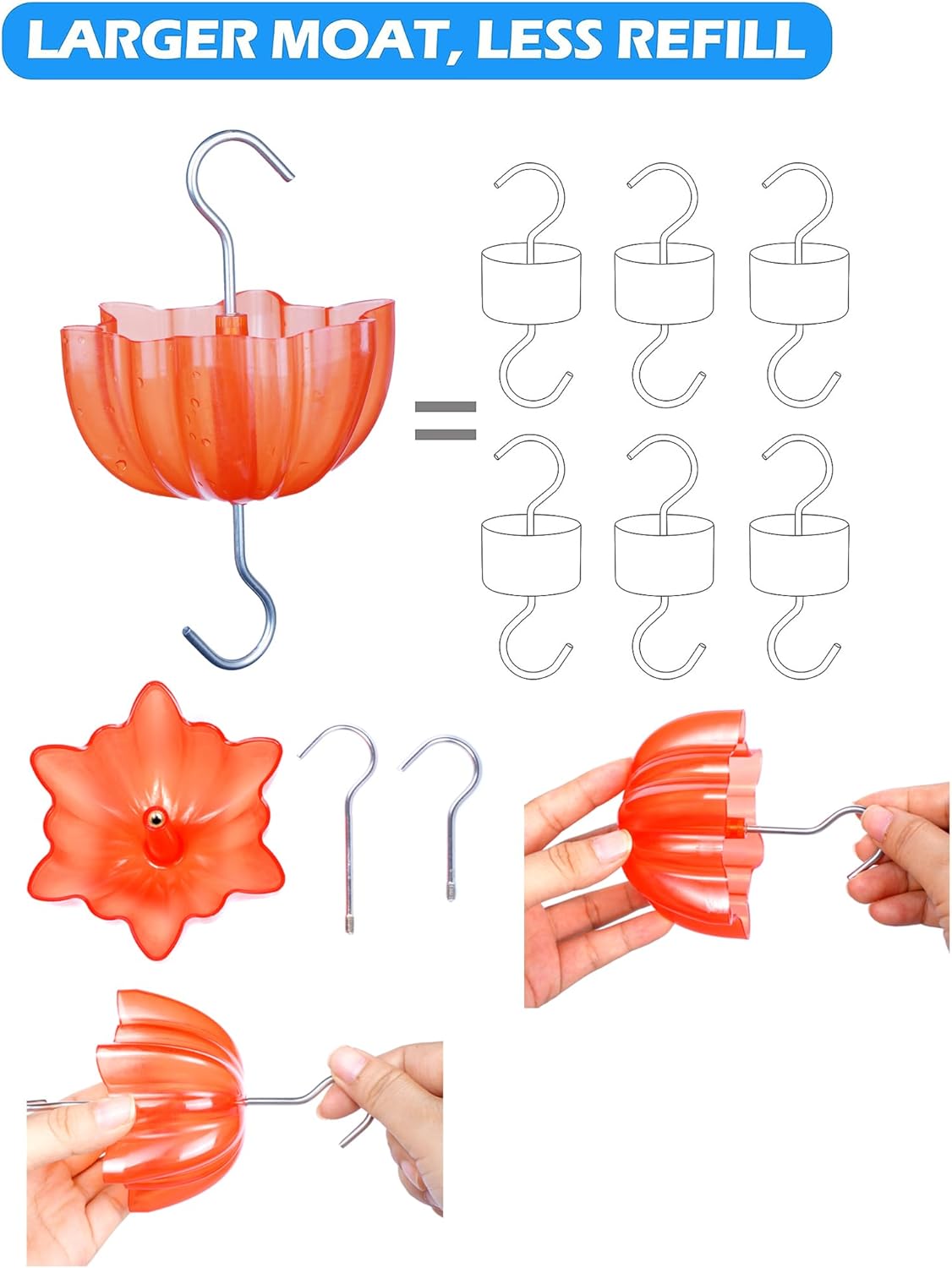 Ant Moat for Hummingbird Feeders, Vintage Style Humingbird Feeder Ant Guard & Stopper (Red 4 Pack)