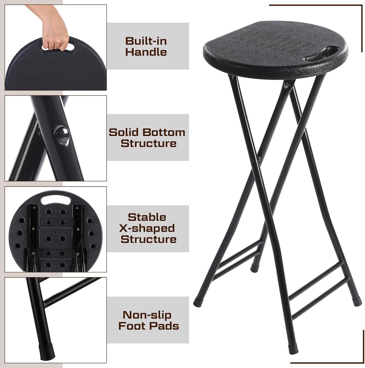 - Easy to Fold: our folding counter height stool can be folded when not in use and stored in tight corners or car trunks to save more room, has a handle design that is convenient to carry and move, providing maximum utility when needed; This practical design makes storage and handling easier and quicker