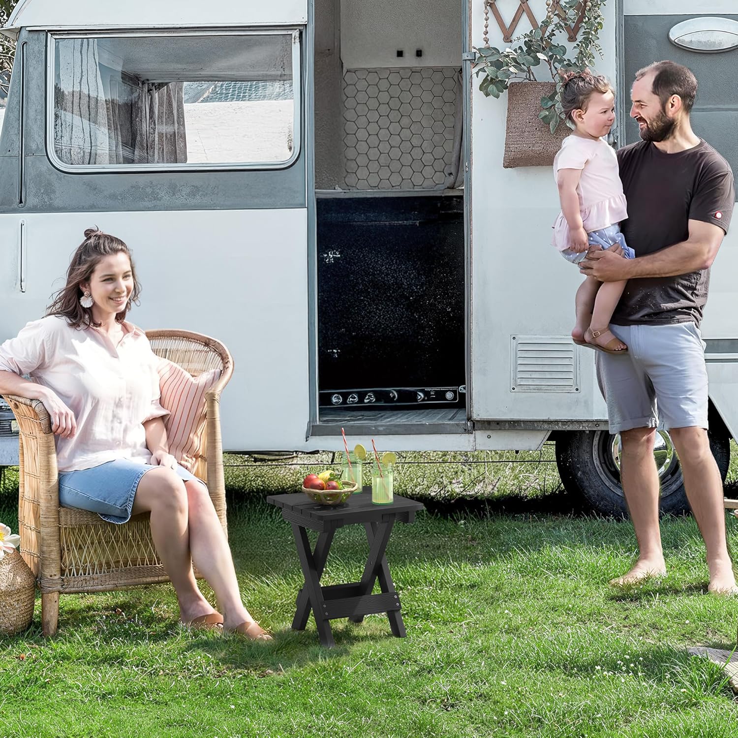 LUE BONA Small Outdoor Folding Side Table, Indoor Shower Bench Stool, HDPS End Table for Bathroom, Patio, Pool, 14 Inch Height, Black