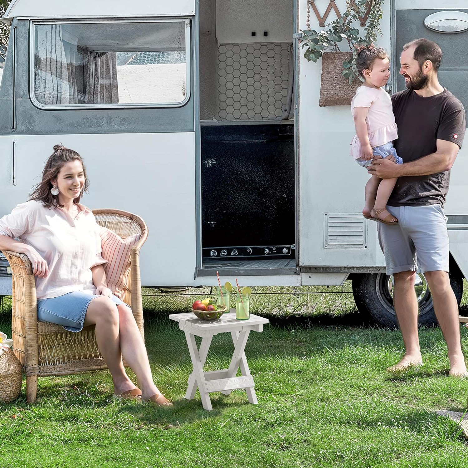 LUE BONA Small Outdoor Folding Side Table, HDPS Outside End Table for Patio, Porch, Deck, Pool, 14 Inch Height, White
