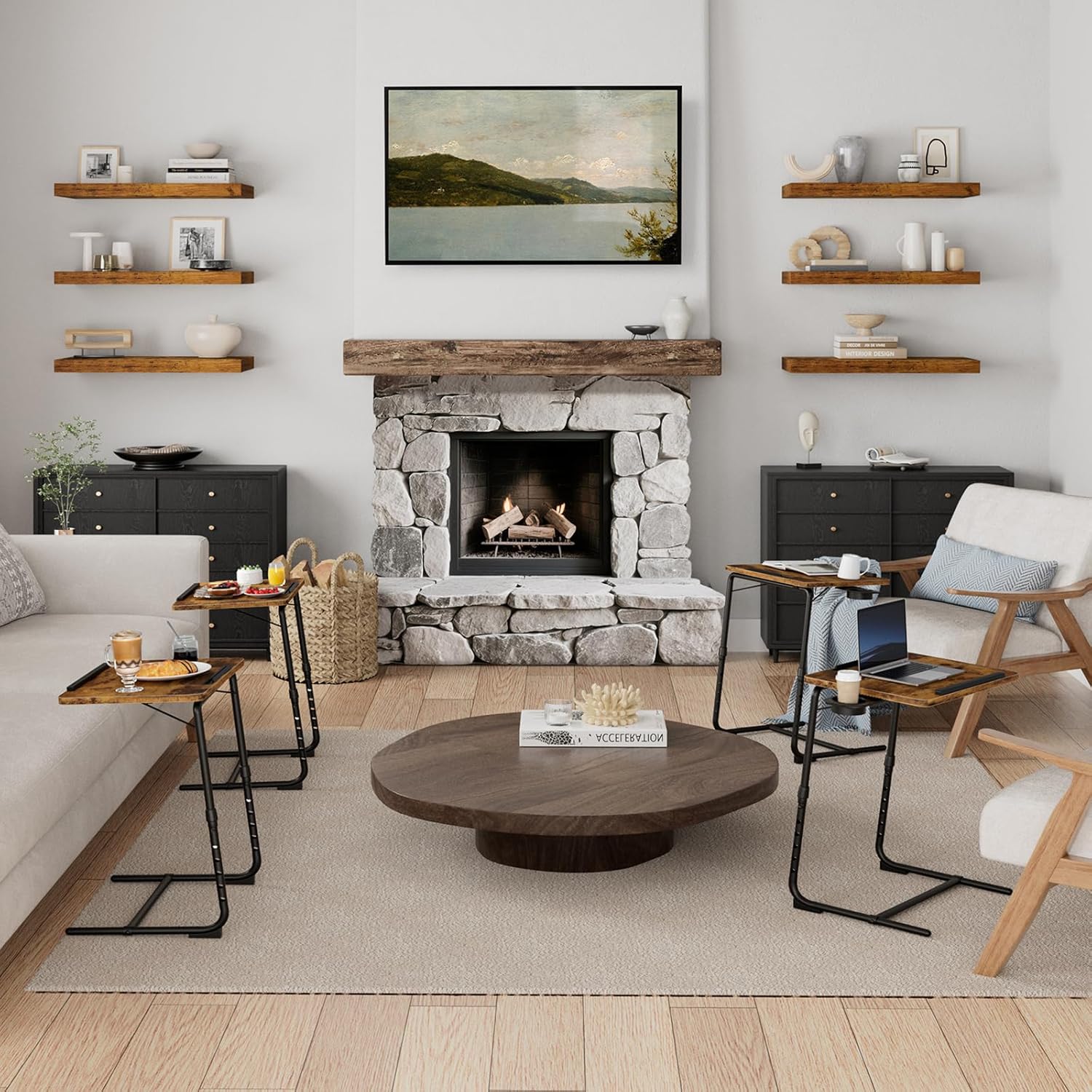 TV Trays Set of 4 - Folding TV Tray Adjustable Dinner Trays for Eating On Couch Wooden Tables Mate Stand Foldable Rustic Desk with Cup Holder Portable