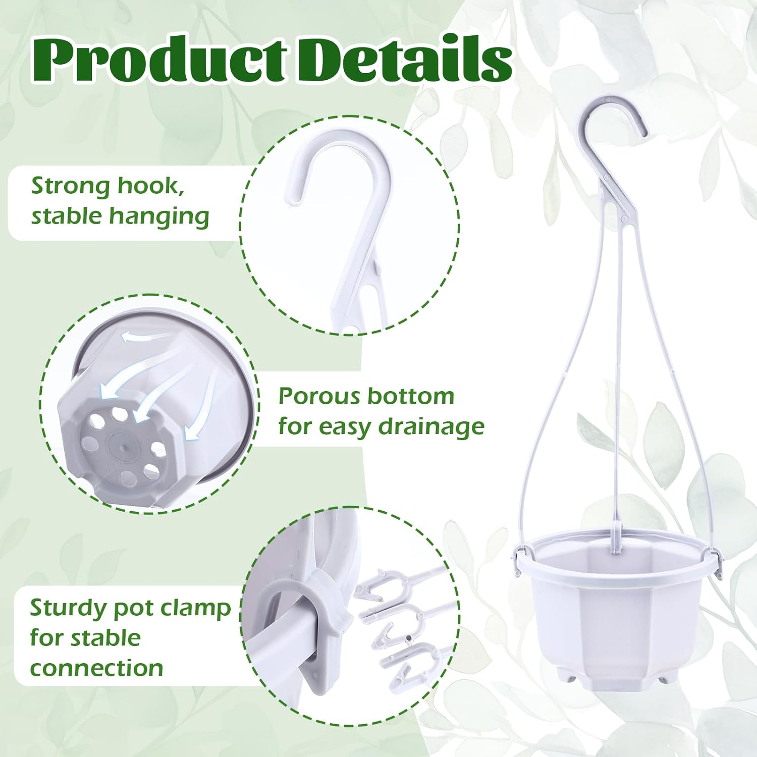- Widely Applicable: plastic hanging pots are equipped with 3 chain hooks, and the detachable hooks are strong and balanced, which can ensure a stable hanging; The hanging plant pots are suitable for our balcony, home, room, office, courtyard, garden and more