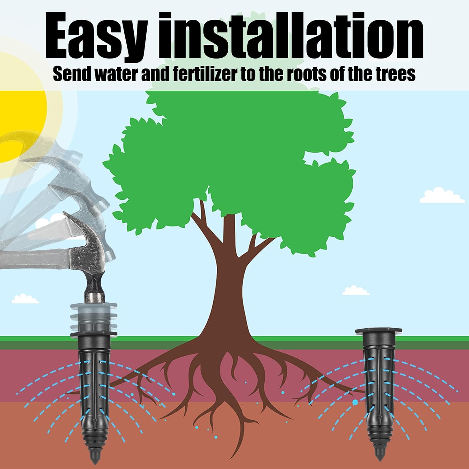 - Deep Watering Stake: our watering stake endorses healthy root growth by encouraging trees, shrubs, and bushes to grow roots from the trunk; Deep watering nourishes the plant promoting robust root systems, leading to healthier plants with a solid foundation