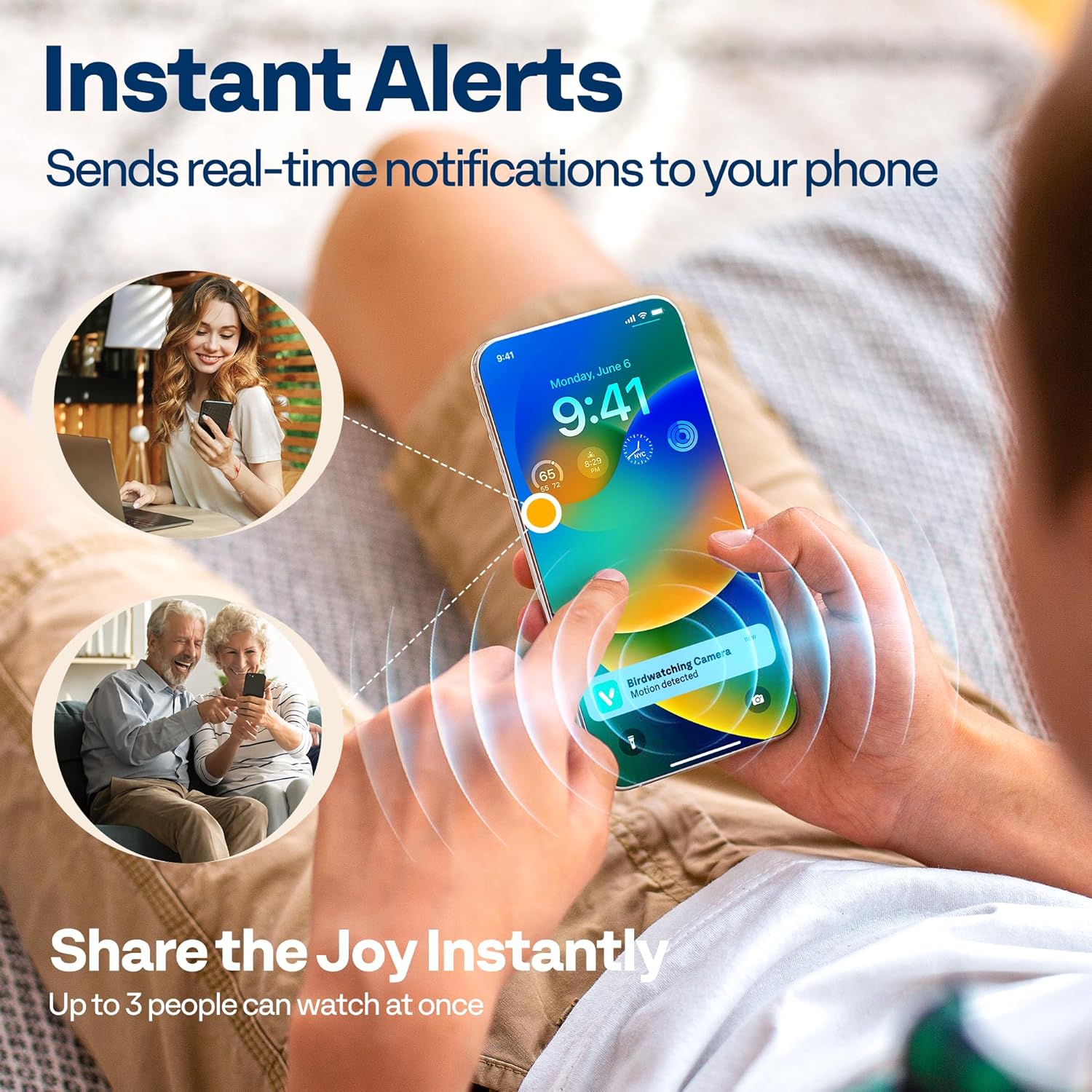 - INSTANT MOTION ALERTS & SECURE STORAGE: The smart birdbath instantly detects bird activity and sends real-time push notifications to your phone; Equipped with a 142°wide-angle lens, you see more of the action in sharp detail; Store today’s photos for free anytime; Enjoy 2 years free video and cloud storage for 0.5GB/3-day rolling history; To access more cloud storage, a subscription is required; Supports microSD card expansion up to 128GB(not included).