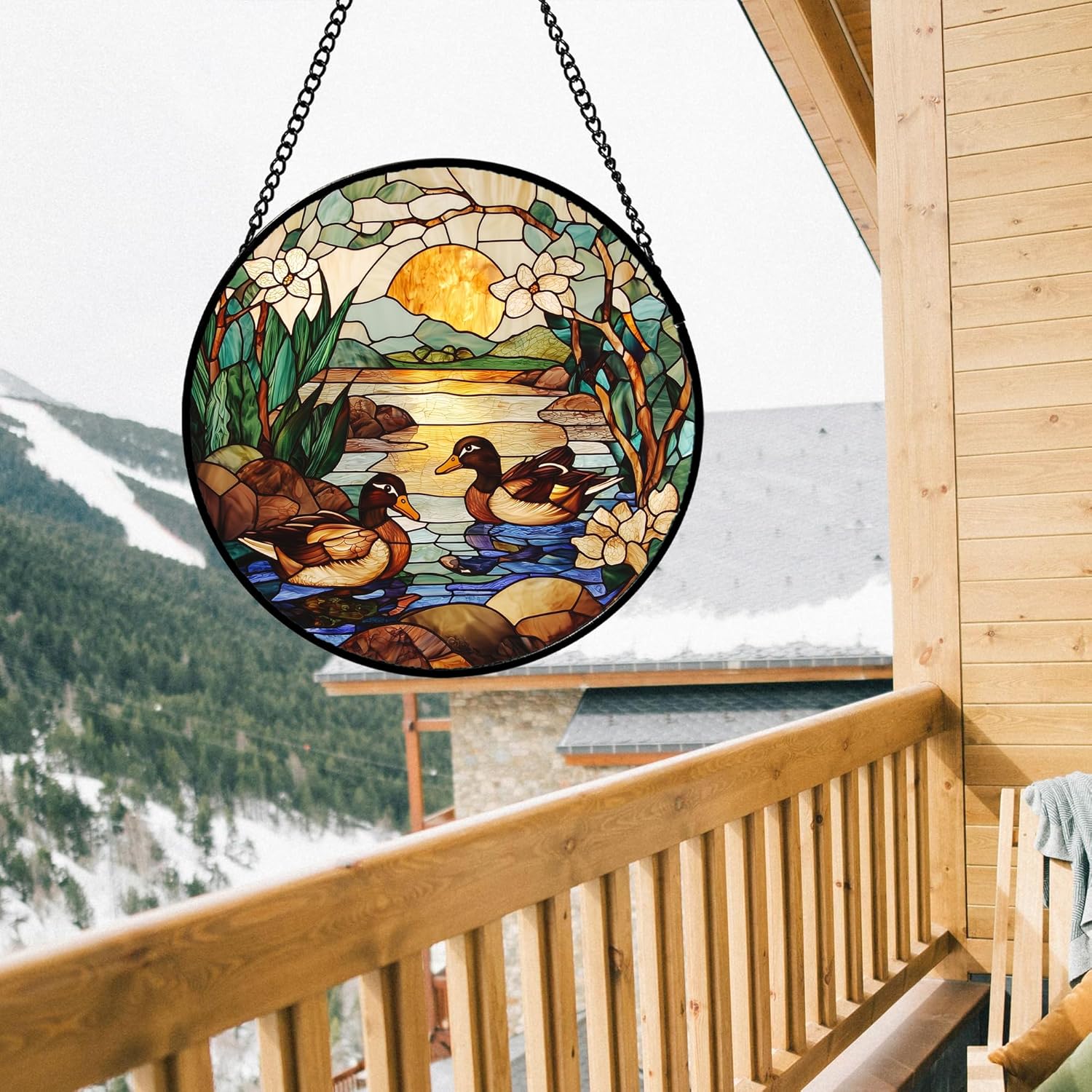 Stained Glass Window Hanging, Ducks in The Pond Sun Catcher for Door Home Decor Landscape Plant Suncatcher Christmas Mother's Day Birthday Gifts for Women Men Mom Nana 7.8 in